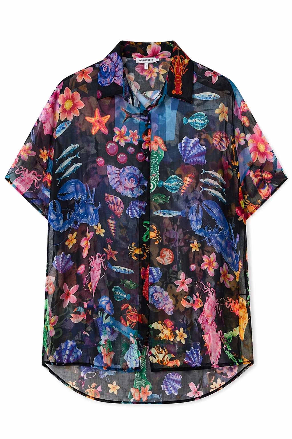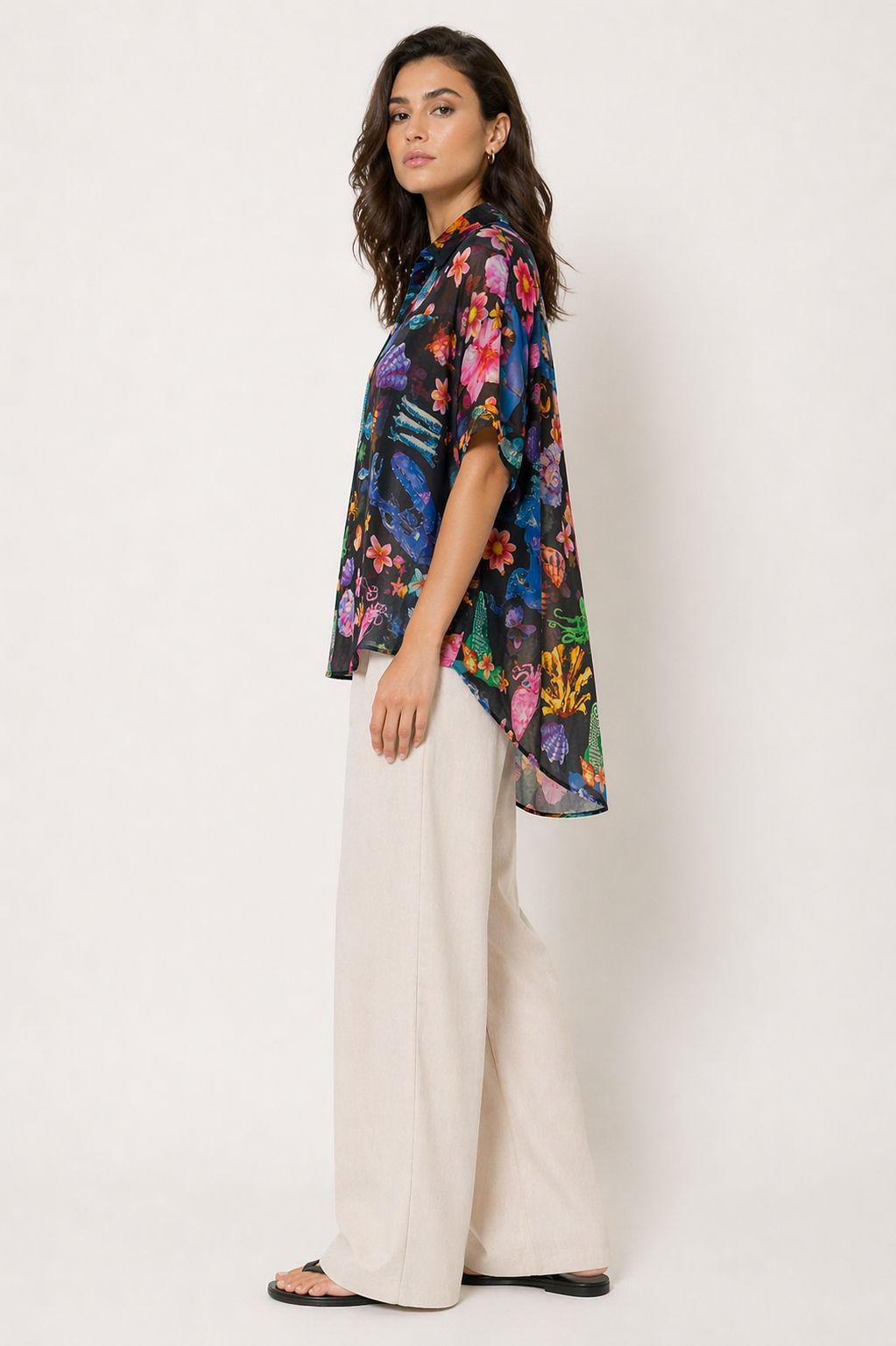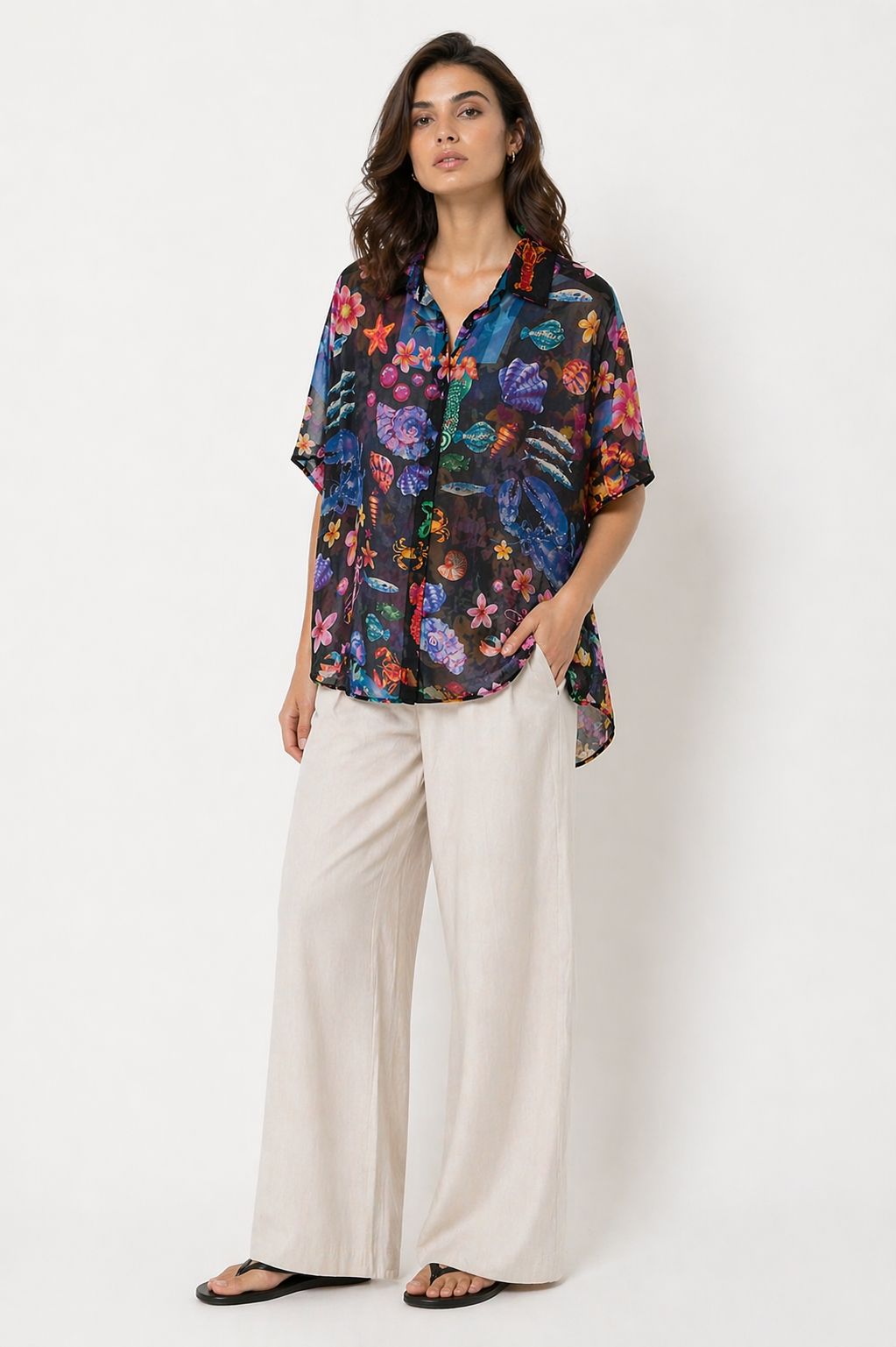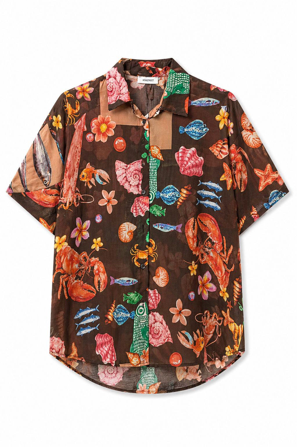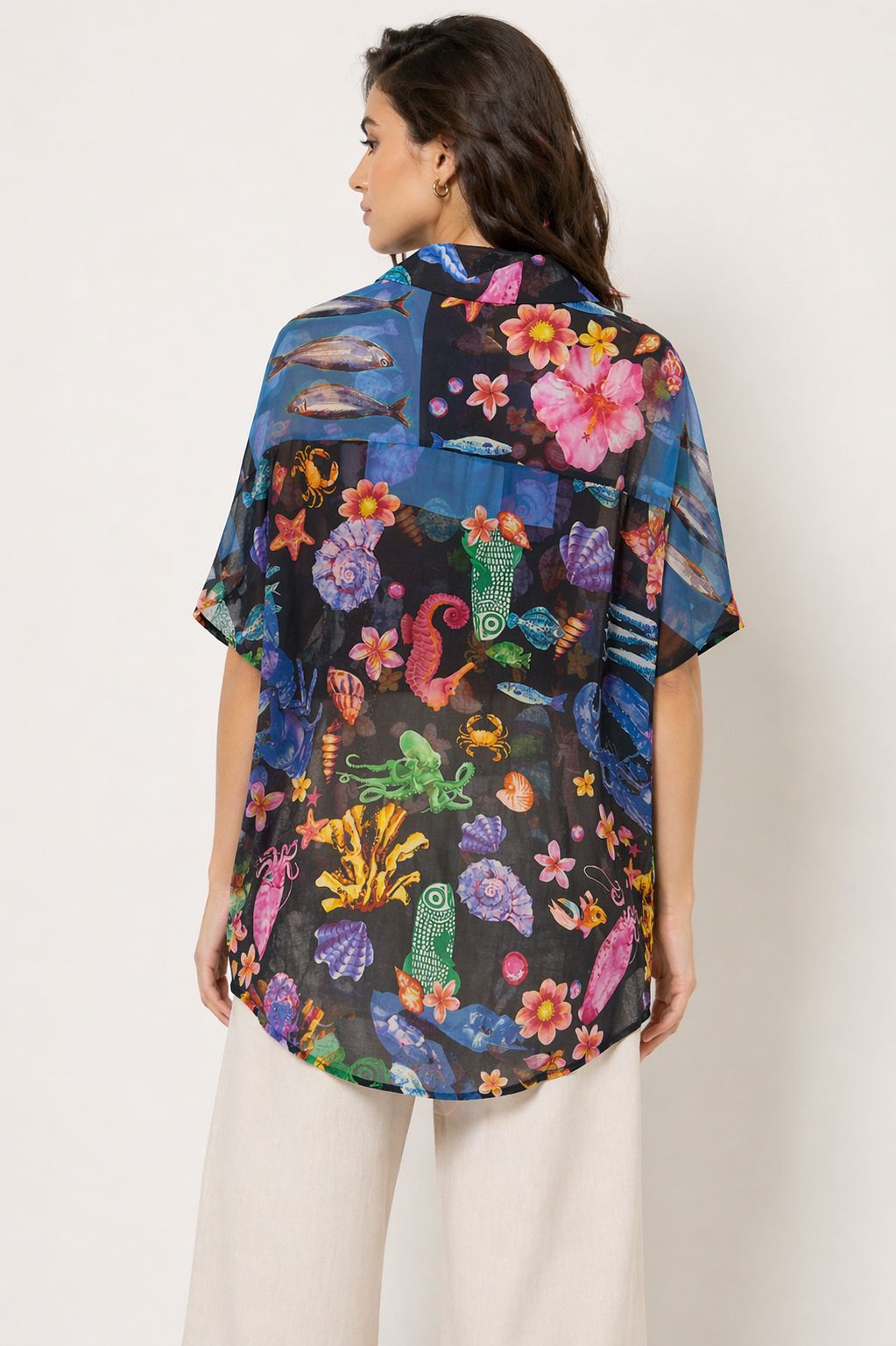 Hawaii-Print-Hemd mit lebendigem und modernem Design – perfekt, um Ihrer Garderobe eine exotische und originelle Note zu verleihen. Die tropischen Muster verleihen dem Hemd Persönlichkeit und machen es ideal für frische und dynamische Sommer-Looks.