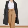 Pantalone a palazzo con cintura con fiore in vita e due pinces.