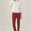Pantaloni a sigaretta con tasche alla francese. Bottone e zip in vita. Risvolti sul fondo.