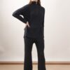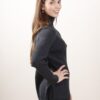 Maglia lunga a costine con zip sul collo, più lunga dietro, con spacchetti laterali, vestibilità over.