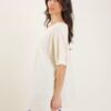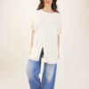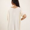 Maxi-maglia con spacco frontale e bottoncini sulle maniche, orli a taglio vivo.