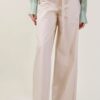 Pantaloni palazzo in popeline di cotone con cintura, fibbia argentata. Cucitura effetto push-up sul retro.