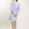 Chemisier in popeline, maniche a palloncino, colletto alla coreana e cintura in vita.