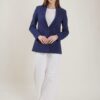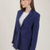 Giacca elegante e strutturata. Presenta un taglio sartoriale con spalle definite e una silhouette leggermente avvitata che valorizza la figura, con un unico bottone centrale per la chiusura.