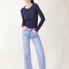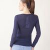Maglia a scollo rotondo in misto seta e viscosa, aderente.