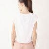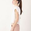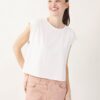 Top con collo tondo rifinito, maniche corte con risvolto per un tocco moderno.