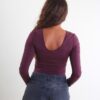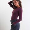 Langärmliger Body mit Rundhalsausschnitt aus weichem, dehnbarem Stoff, der sich eng an den Körper schmiegt. Ein vielseitiges Basic-Modell, perfekt unter Blazern, Cardigans oder hoch taillierten Röcken für einen raffinierten und femininen Look.