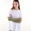 Damen-T-Shirt mit Ärmeln aus Spitze und klassischem Rundhalsausschnitt. Die kurzen Ärmel sind mit langen Spitzenärmeln gefüttert, die einen raffinierten Lagenlook erzeugen.