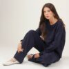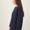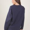 Felpa punto milano, scollo rotondo, più corta davanti, con cuciture a vista. Vestibilità over.
