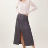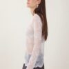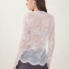 Top in pizzo trasparente a maniche lunghe, scollo rotondo a taglio vivo, elasticizzato.