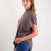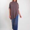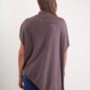 Das minimalistische Design wird durch den gerippten Stehkragen betont, der den Hals sanft umschließt, ohne einzuengen. Die lockere Passform mit überschnittenen Schultern sorgt für einen bequemen Sitz, während die gerade Silhouette und der fließende Strickstoff für Weichheit und Bewegungsfreiheit sorgen.
