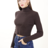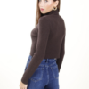 Maglia a collo alto a coste con lavorazione geometrica sul fronte, fit aderente.