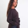 Langer Pullover mit U-Boot-Ausschnitt und langen Ärmeln, verstärkt durch einen Taillengürtel, der eine verstellbare Passform ermöglicht und die Figur schmeichelt. Der fließende Schnitt und der weiche Stoff sorgen für Komfort und Vielseitigkeit. Dieses Modell lässt sich perfekt mit Leggings, schmalen Hosen oder als Maxipullover unter Jacken und Mänteln kombinieren.