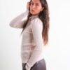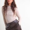 Gerippter Rollkragenpullover mit transparentem, radialem Detail am oberen Rand, das dem Design Leichtigkeit und Raffinesse verleiht. Die schmale Passform betont die Silhouette, während die vertikale Rippung für Elastizität und Tragekomfort sorgt. Ein vielseitiges und elegantes Kleidungsstück, perfekt zu Röcken, Hosen oder unter Jacken und Cardigans für einen raffinierten und femininen Look.