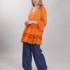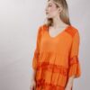 Blusa in misto seta con inserti in pizzo tono su tono. Scollo a V, maniche a tre quarti e fodera interna tono su tono. Vestibilità over.