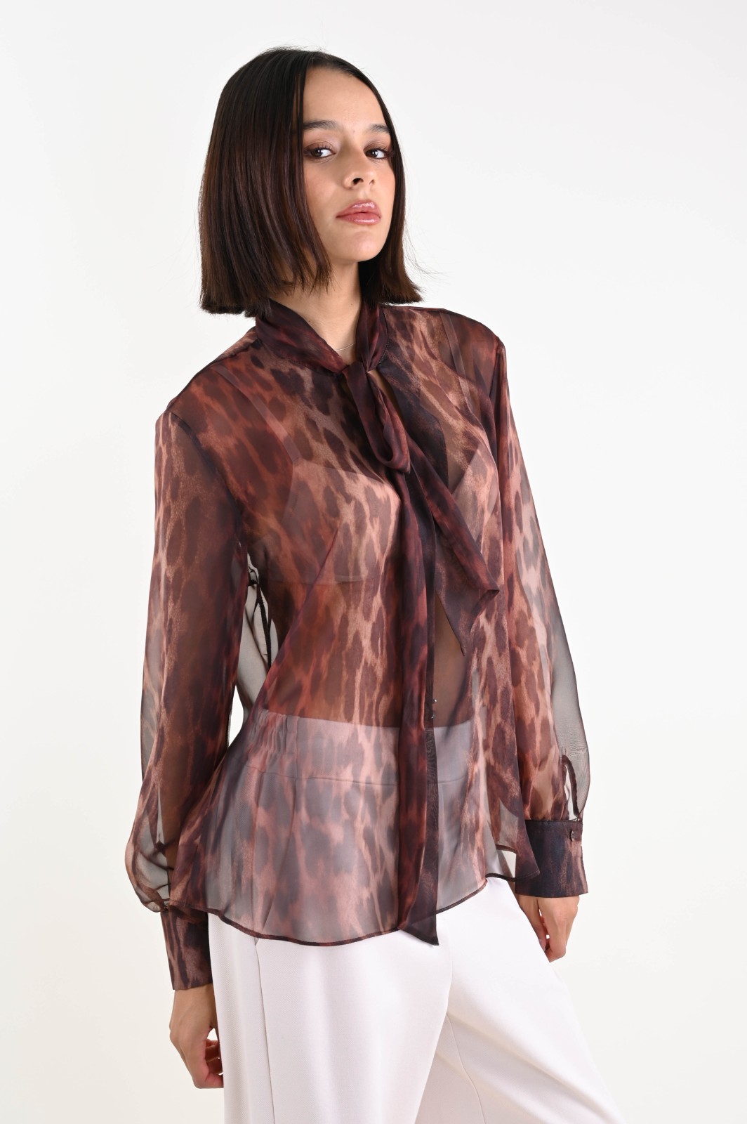 BLUSA LEOPARDATA CON FIOCCO AL COLLO