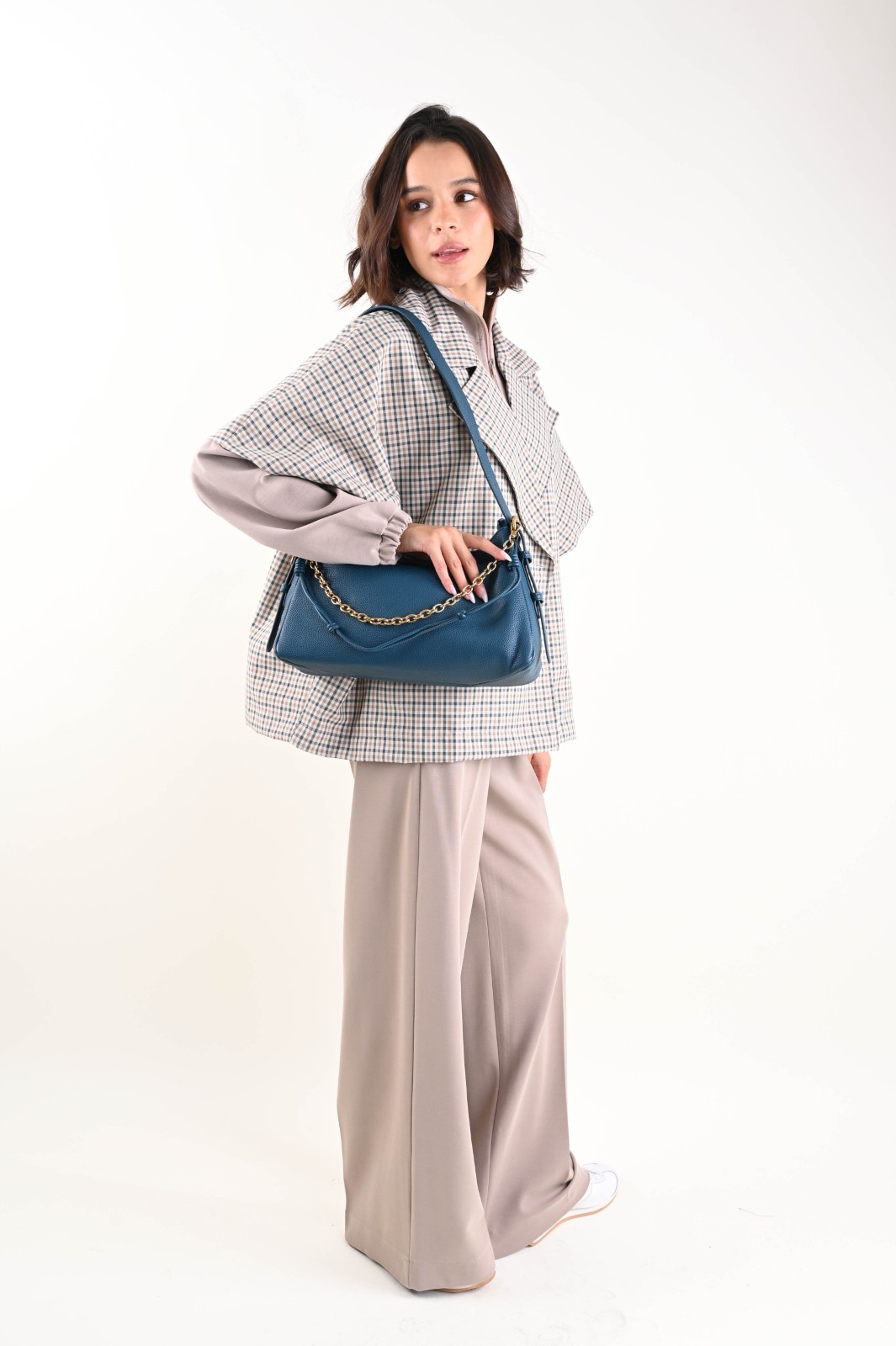 TRENCH CROP SENZA MANICHE CON MOTIVO A QUADRI