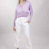Pantaloni con doppio elastico in vita, pinces e risvolti.