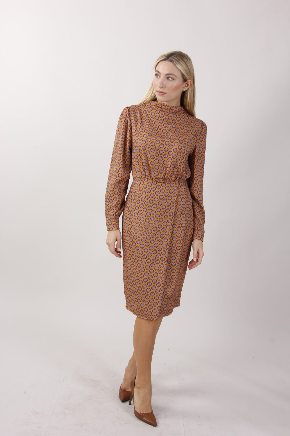 Φόρεμα με σχέδια, μέχρι το γόνατο, με κουρτίνες στο μπροστινό μέρος. κανονική εφαρμογή.