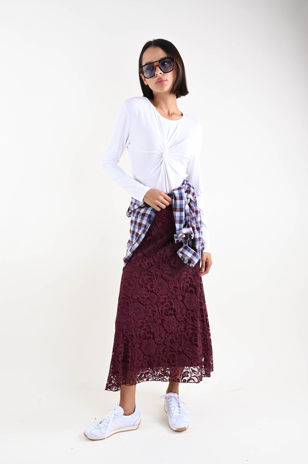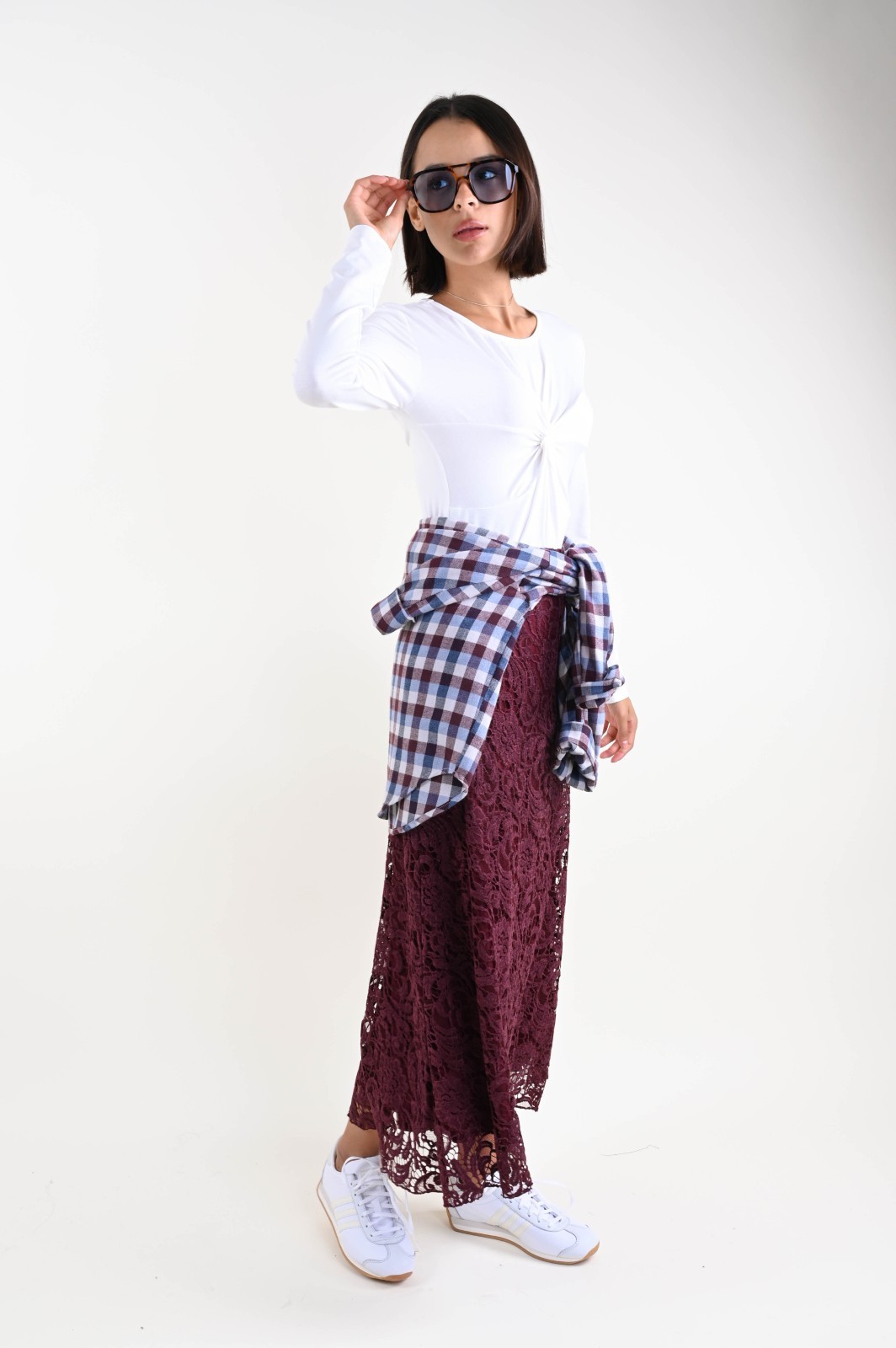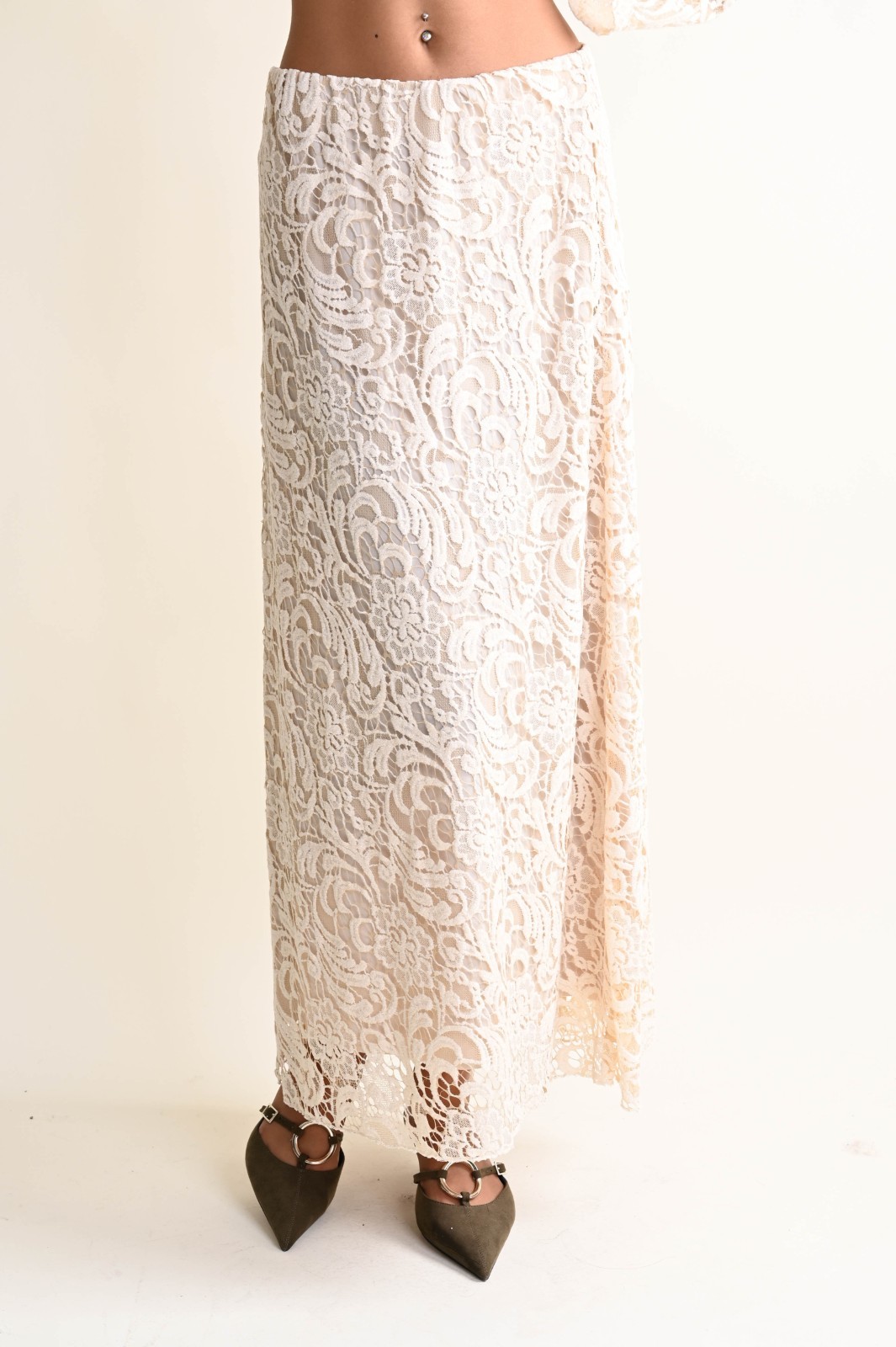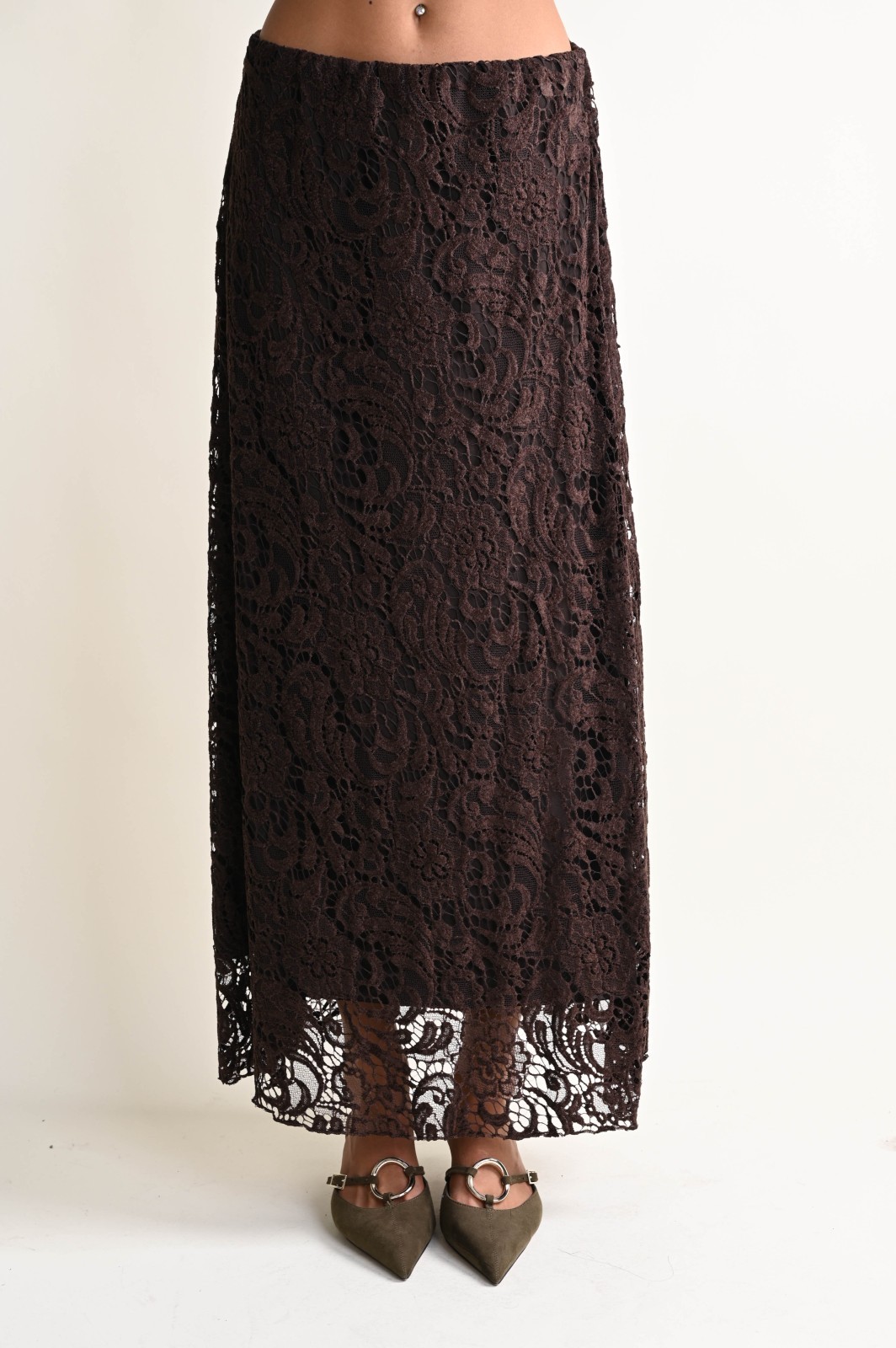 Αυτή η μακριά δαντελένια φούστα από την Myastreet συνδυάζει τον ρομαντισμό και τη νεωτερικότητα σε ένα διαχρονικό κομμάτι. Κατασκευασμένη από υψηλής ποιότητας φλοράλ δαντέλα, αγκαλιάζει τη σιλουέτα με μια ίσια, θηλυκή γραμμή που κολακεύει τη σιλουέτα. Ιδανική με ένα πουκάμισο για μια κομψή εμφάνιση κατά τη διάρκεια της ημέρας ή ένα πλεκτό τοπ για βραδινές περιστάσεις.
