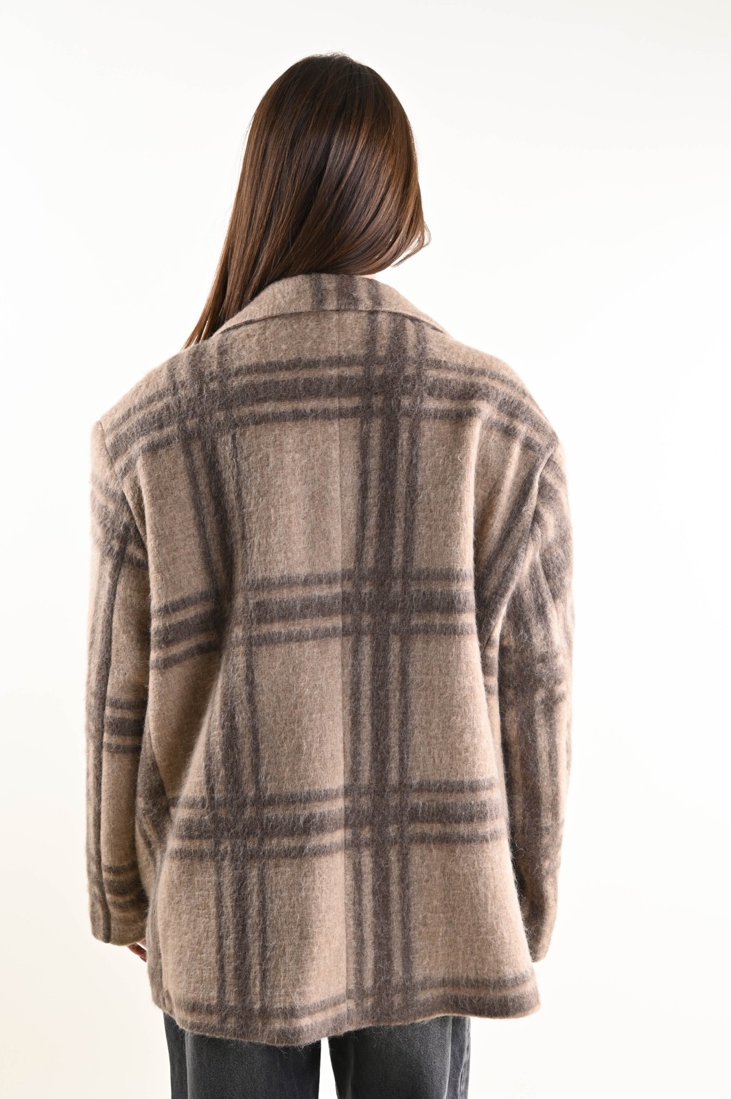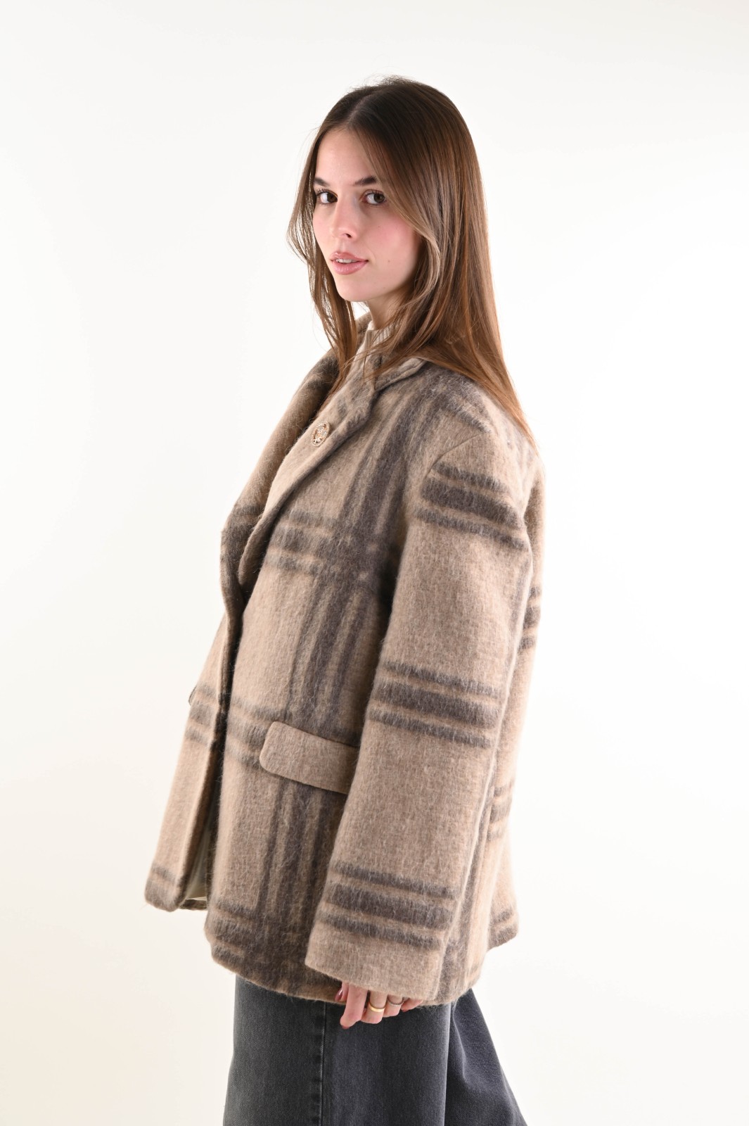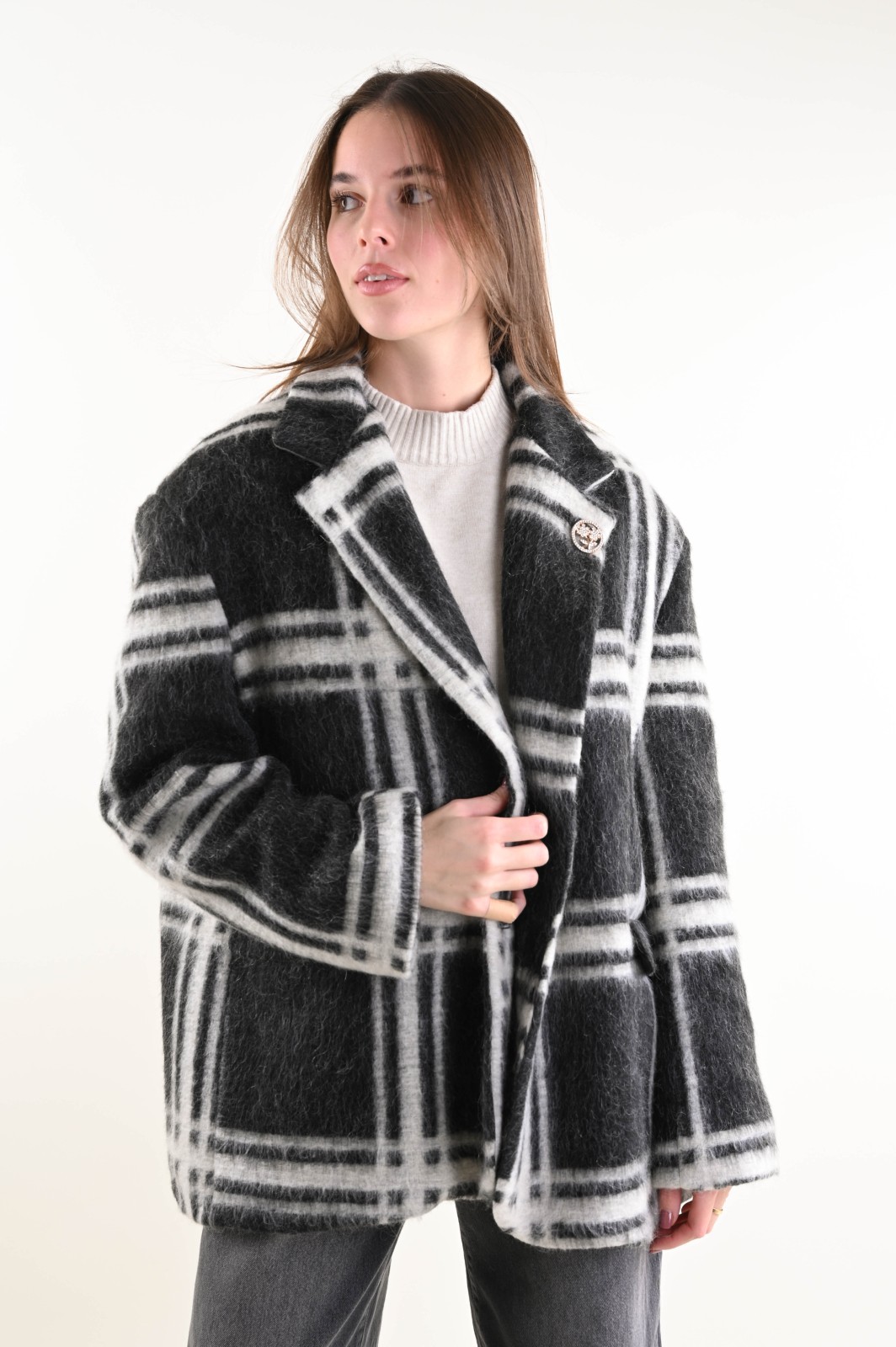 Αυτό το παλτό από μείγμα μαλλιού με καρό σχέδιο διαθέτει εγκοπές στα πέτα, κλείσιμο με δύο κουμπιά και ενσωματωμένη καρφίτσα. Η ίσια εφαρμογή και η απαλή υφή το καθιστούν ένα κομψό και άνετο κομμάτι, ιδανικό για την κρύα εποχή. Ιδανικό για καθημερινές ή πιο εκλεπτυσμένες εμφανίσεις, προσθέτει μια πινελιά διαχρονικού στυλ στην γκαρνταρόμπα σας.