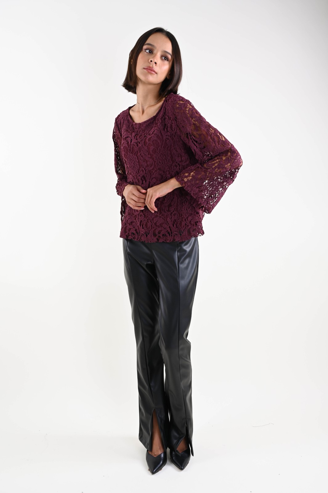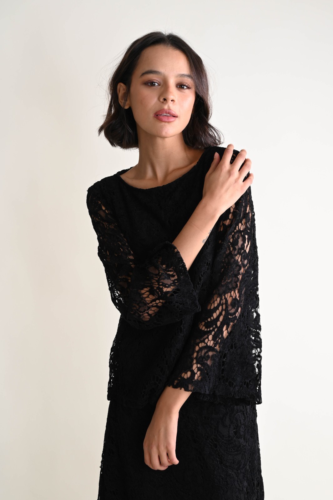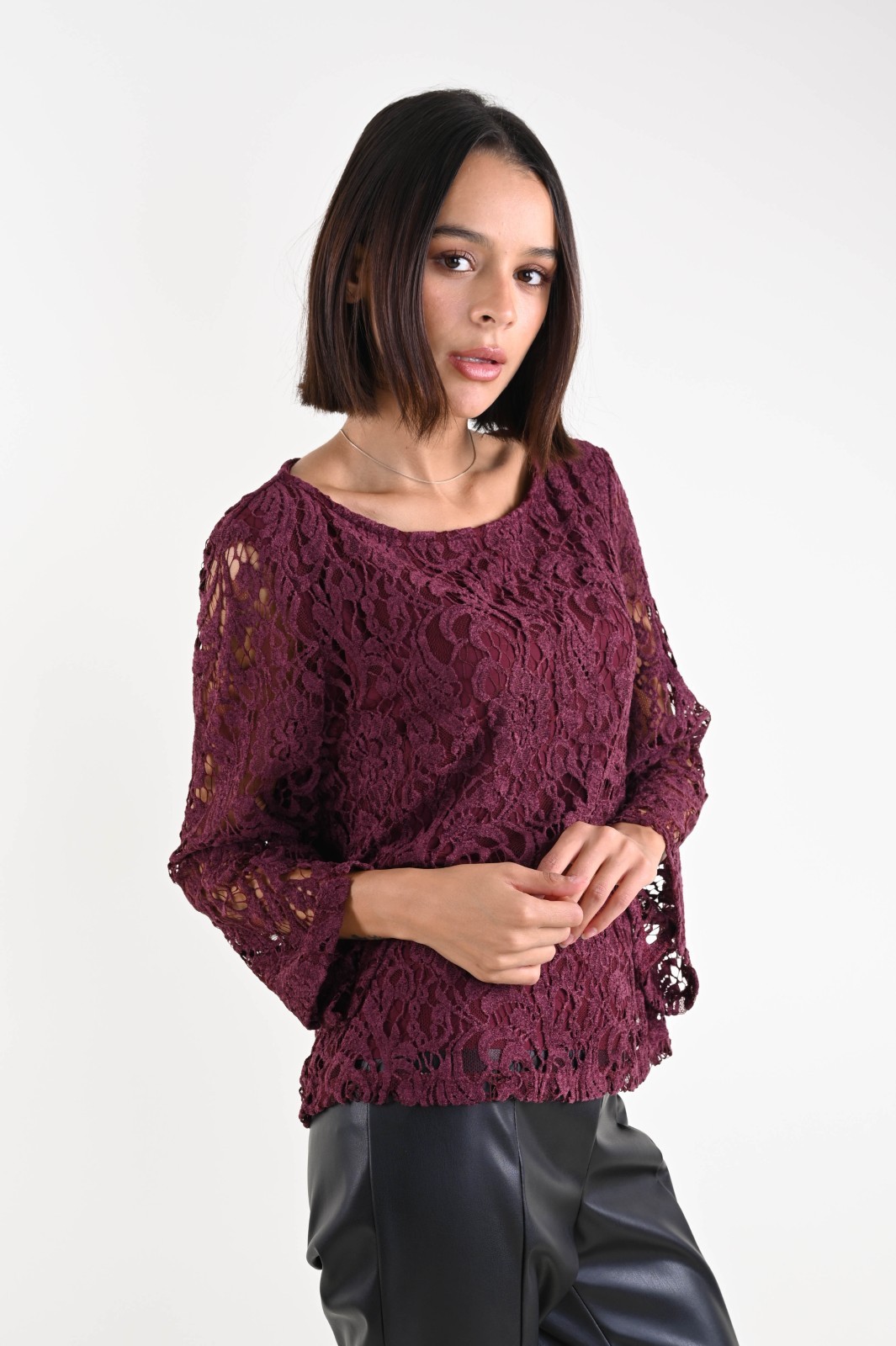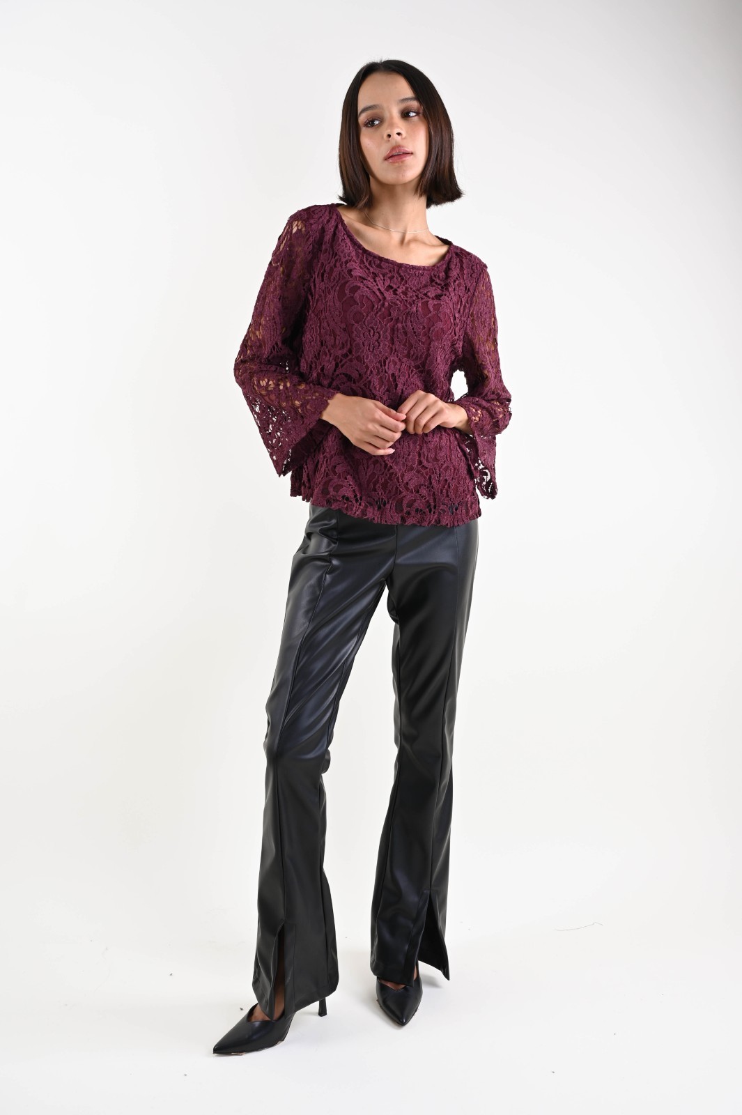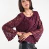 Η δαντελένια μπλούζα με μανίκια καμπάνα από την Myastreet είναι ένα κομμάτι με ρομαντική και εκλεπτυσμένη γοητεία. Κατασκευασμένη από λεπτή υφασμένη δαντέλα, διαθέτει μια θηλυκή και ρέουσα γραμμή που τονίζει κομψά τη σιλουέτα. Τα φαρδιά μανίκια καμπάνα προσθέτουν κίνηση και μια ρετρό πινελιά, επανεξετασμένη με μια μοντέρνα πινελιά.