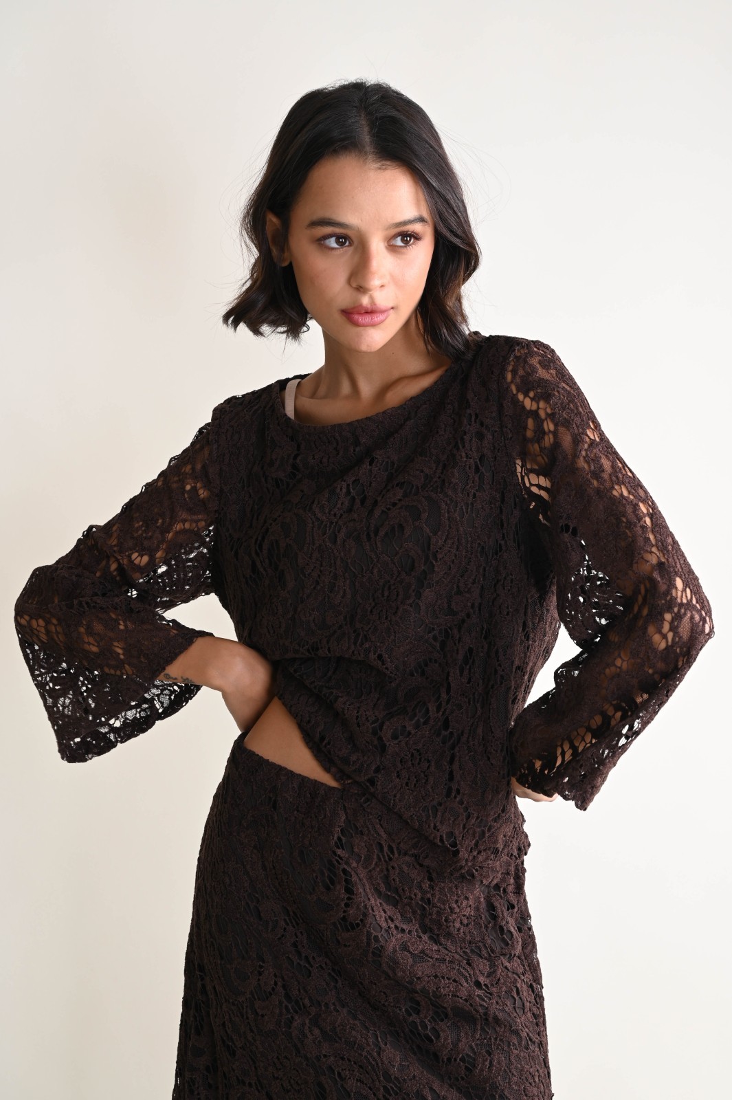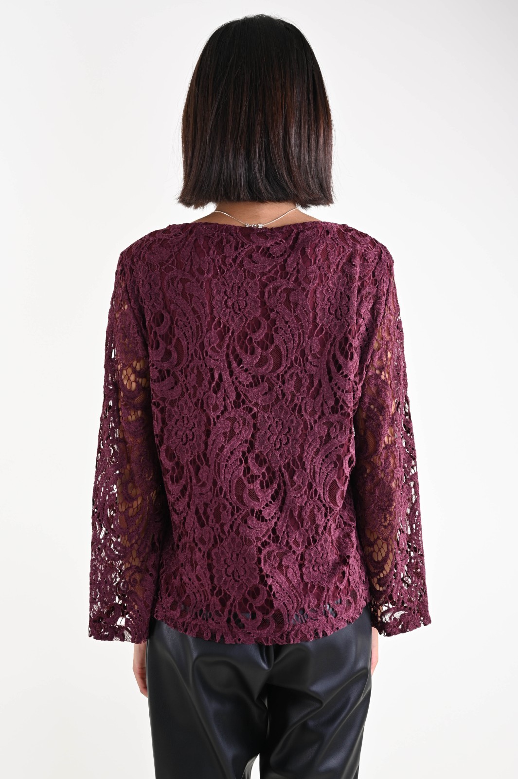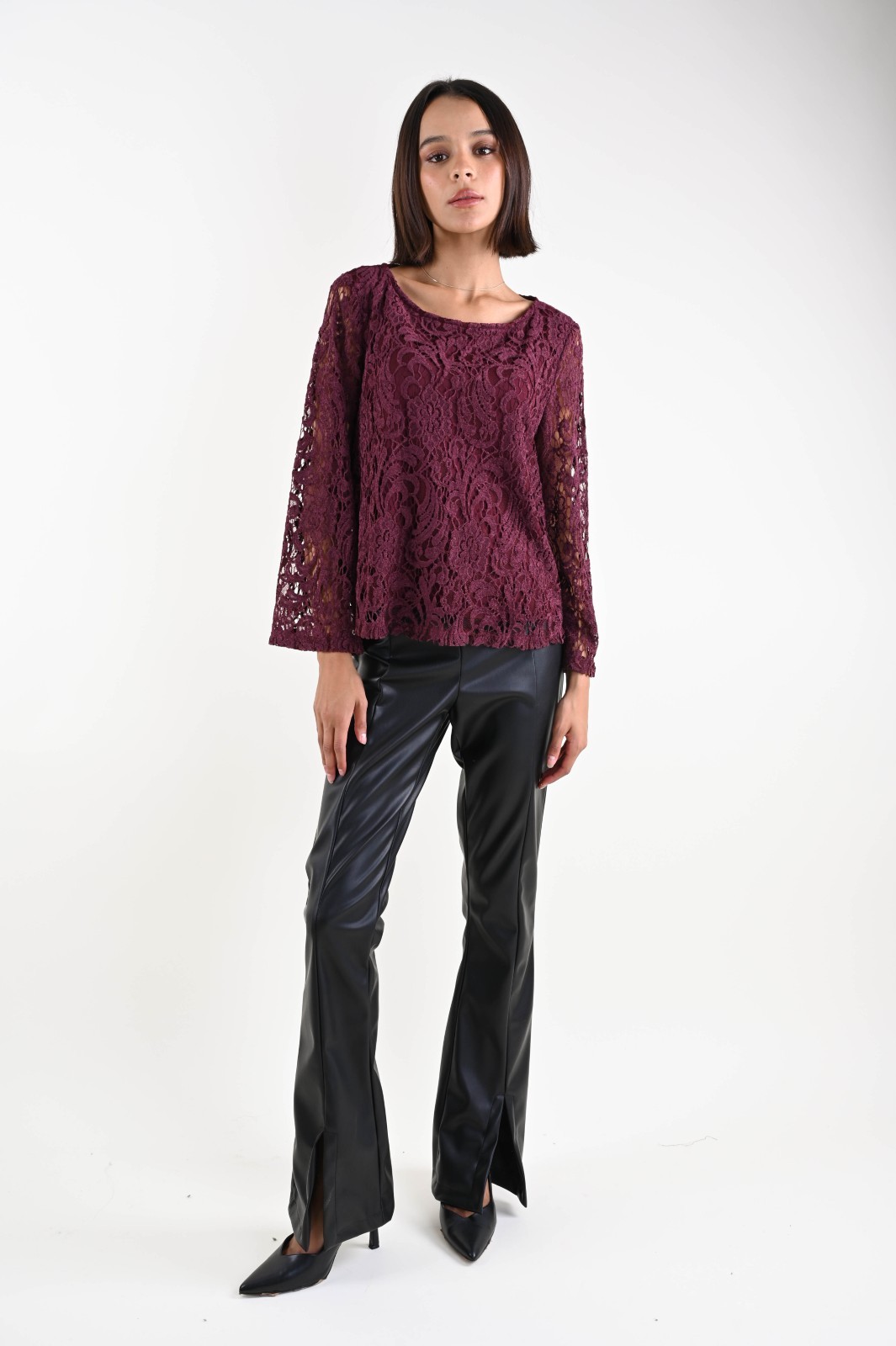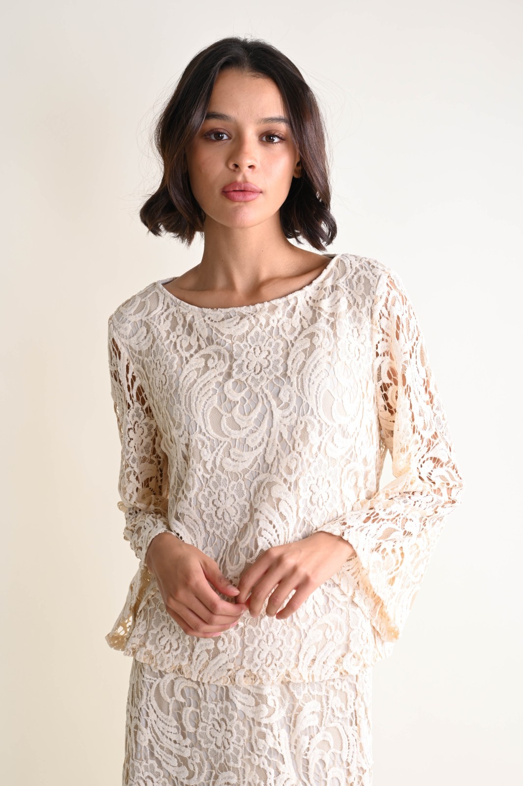 Η δαντελένια μπλούζα με μανίκια καμπάνα από την Myastreet είναι ένα κομμάτι με ρομαντική και εκλεπτυσμένη γοητεία. Κατασκευασμένη από λεπτή υφασμένη δαντέλα, διαθέτει μια θηλυκή και ρέουσα γραμμή που τονίζει κομψά τη σιλουέτα. Τα φαρδιά μανίκια καμπάνα προσθέτουν κίνηση και μια ρετρό πινελιά, επανεξετασμένη με μια μοντέρνα πινελιά.