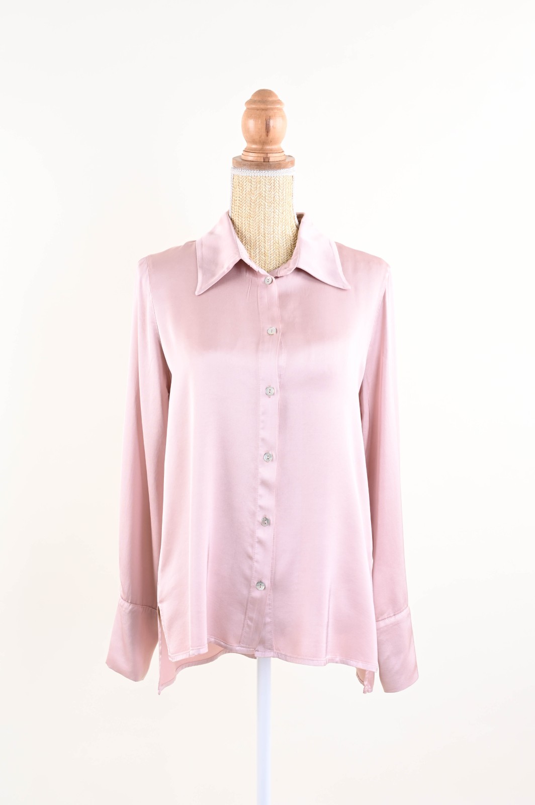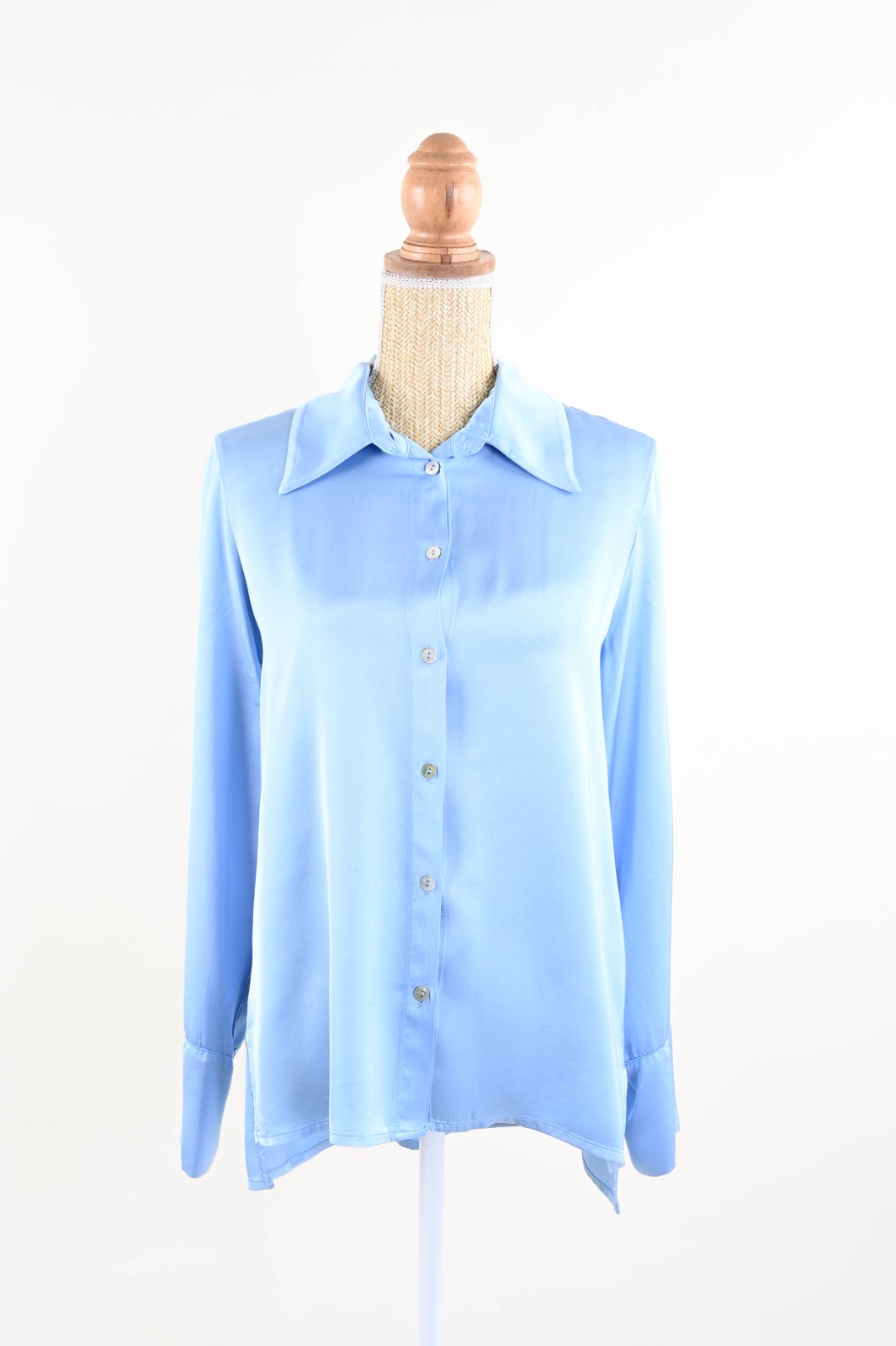 Γυναικείο σατέν πουκάμισο με άνετη και κομψή εφαρμογή, με κλασικό γιακά και κουμπιά από φίλντισι. Αγκαλιάζει τη σιλουέτα χωρίς να την περιορίζει. Μακριά μανίκια με μανσέτες.