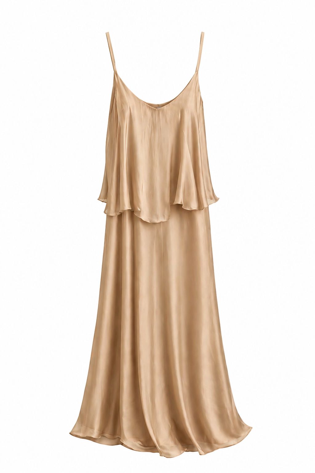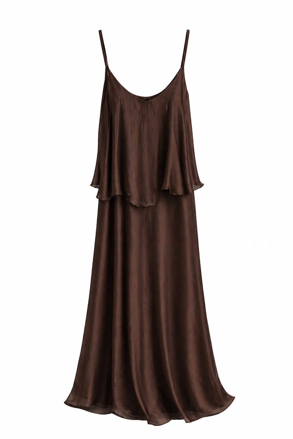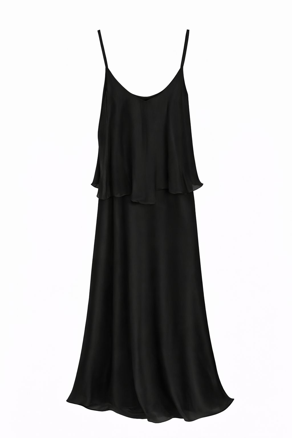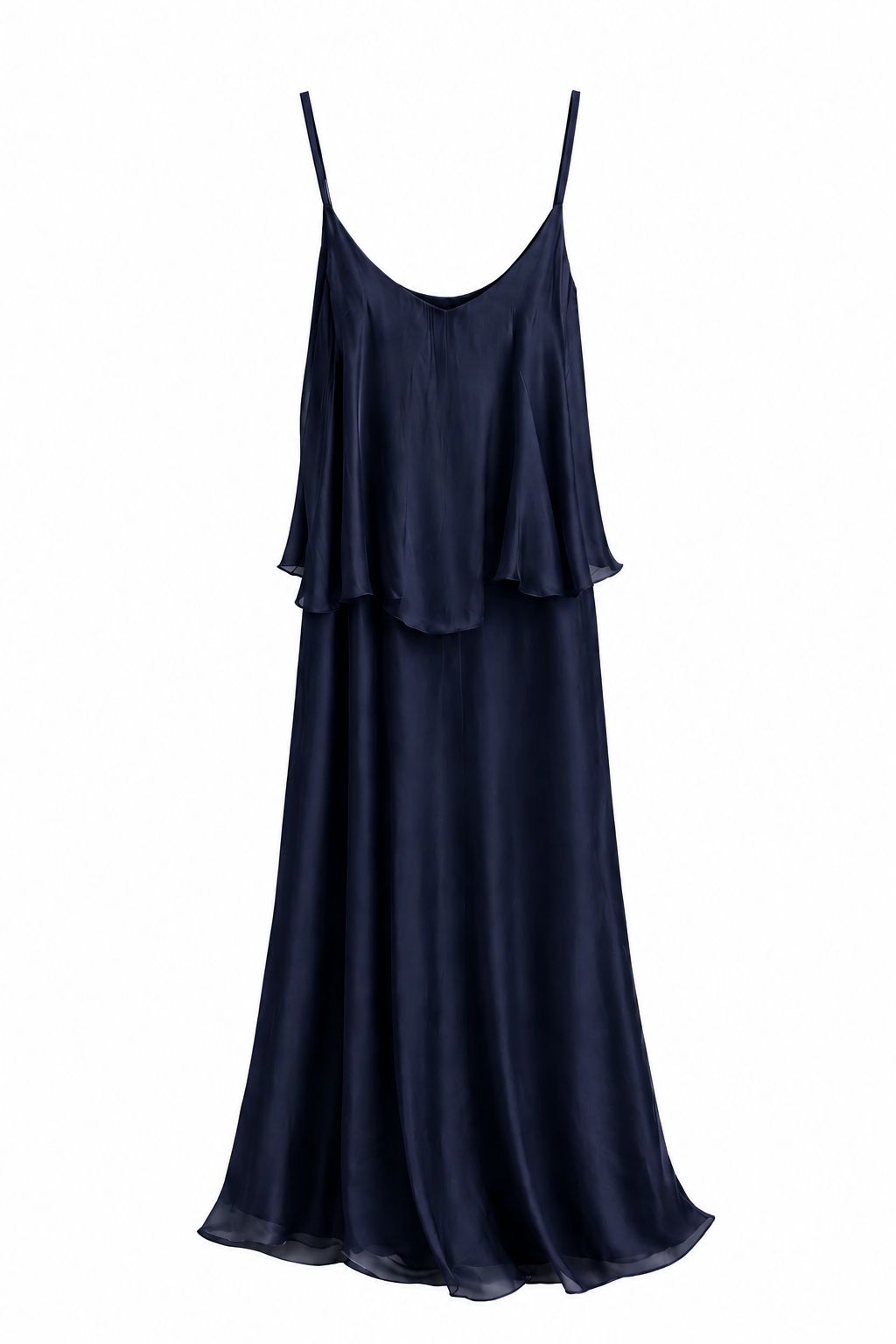 ABITO IN MISTO SETA CON VOLANT E SPALLINE SOTTILI