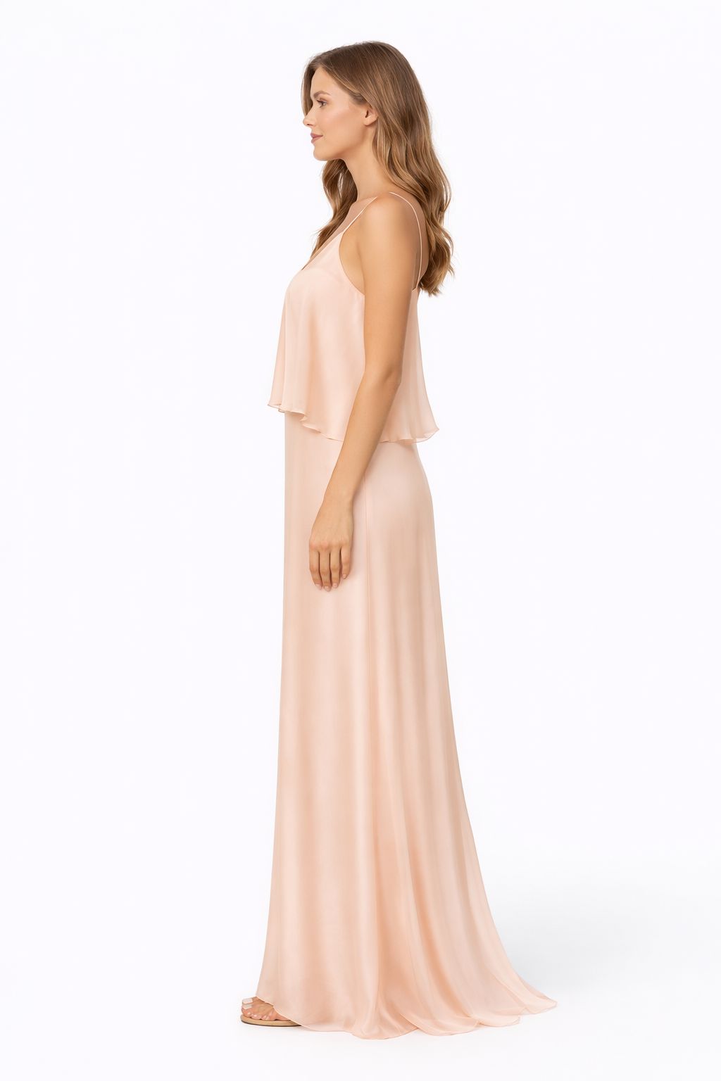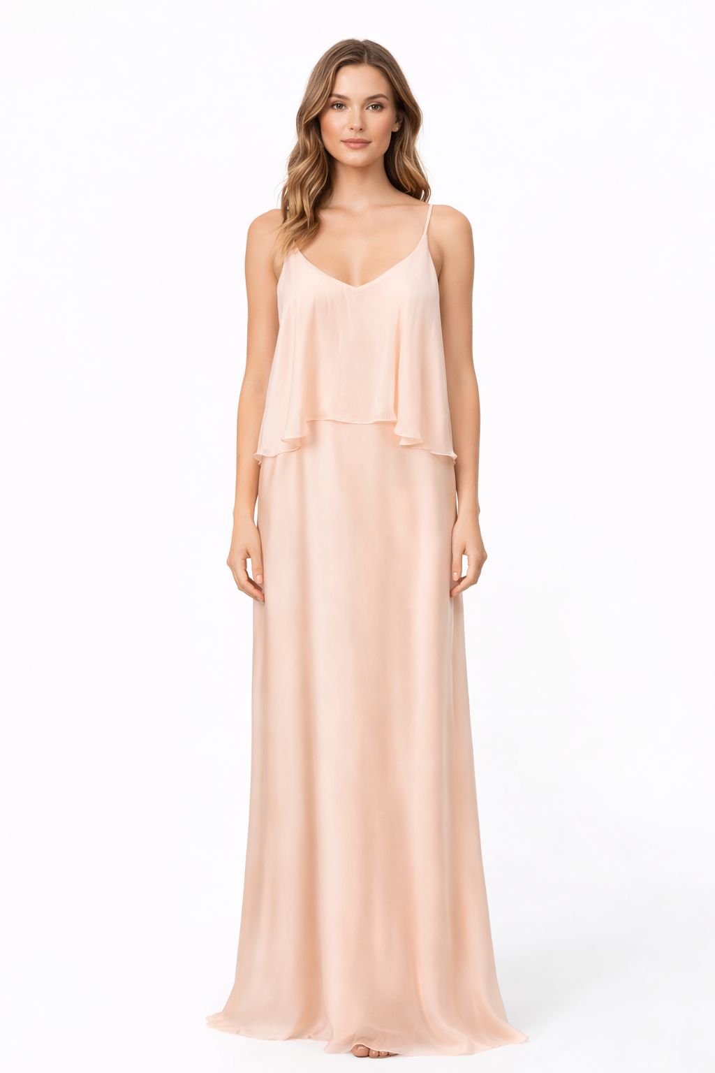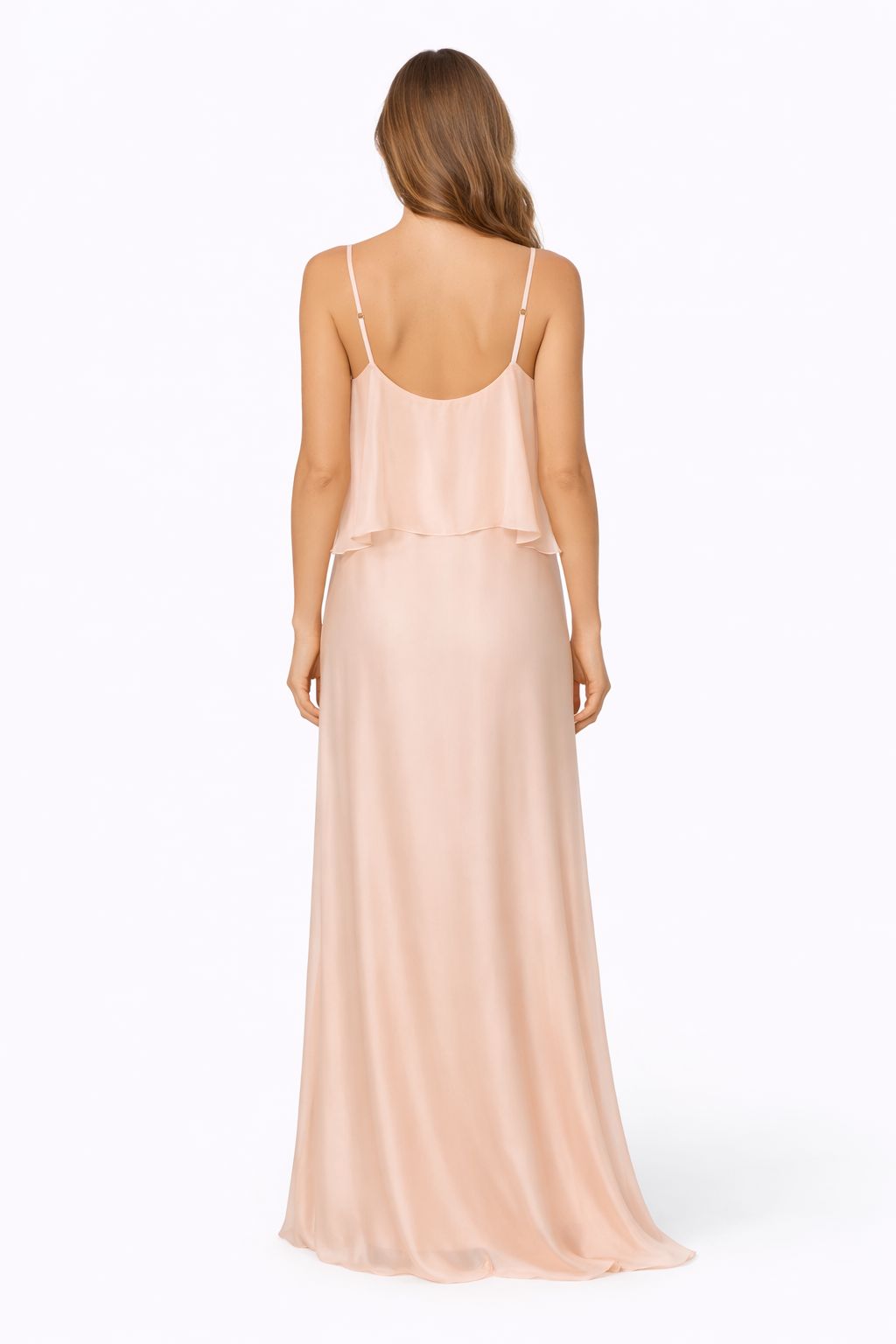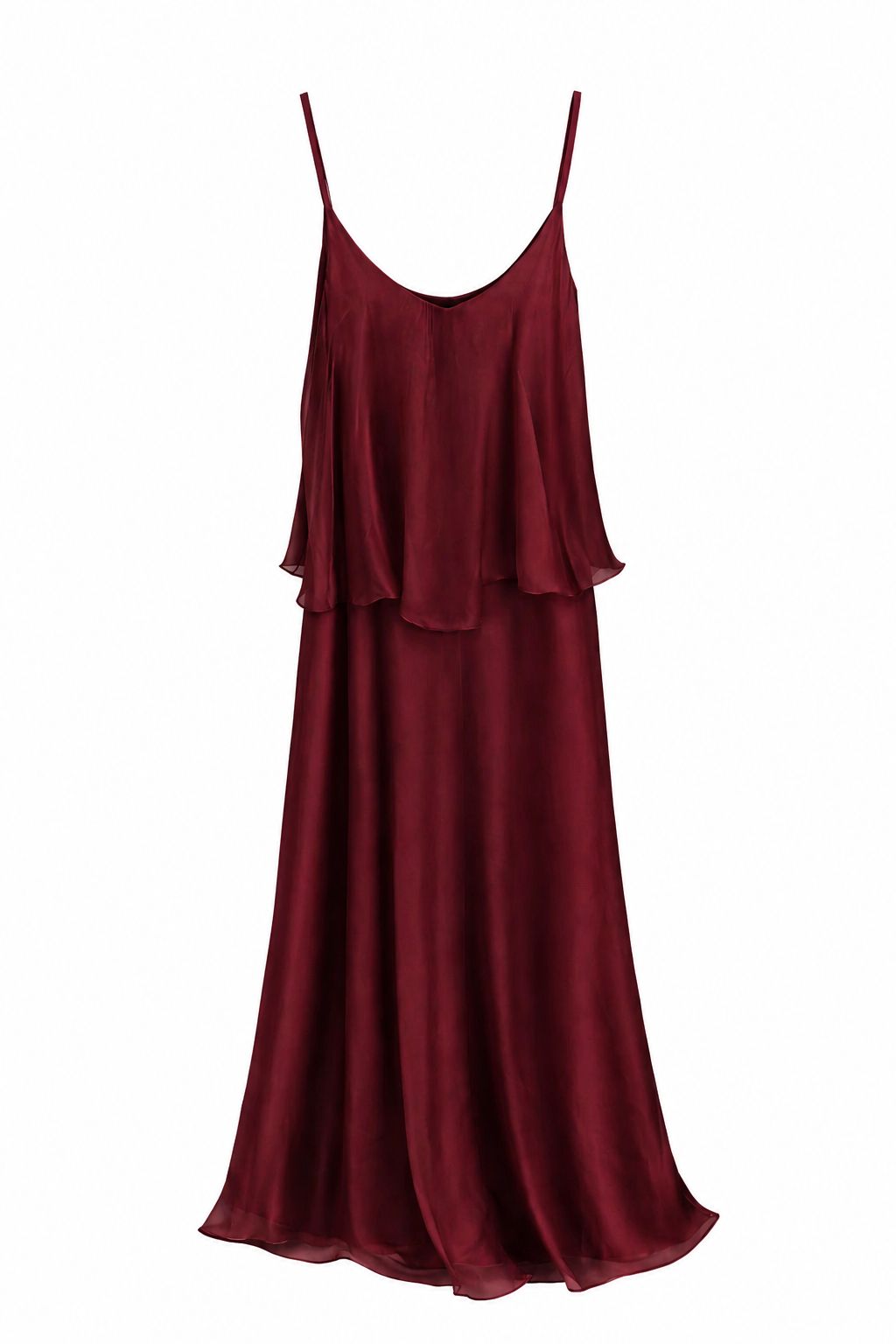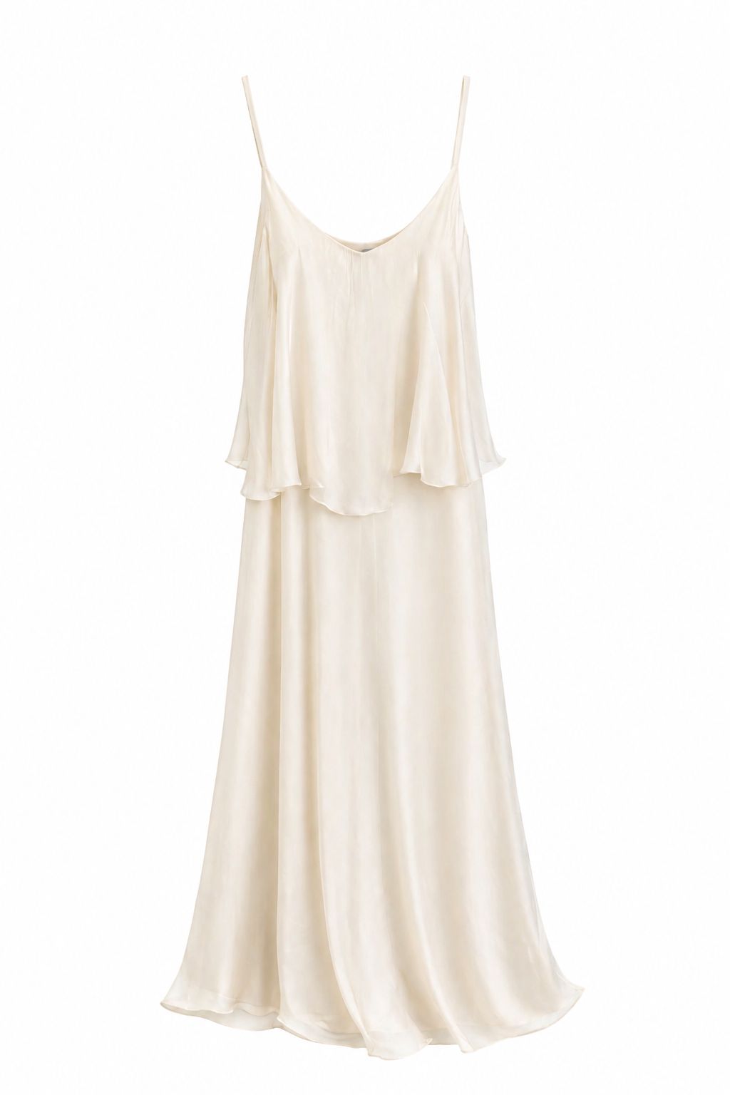 ABITO IN MISTO SETA CON VOLANT E SPALLINE SOTTILI