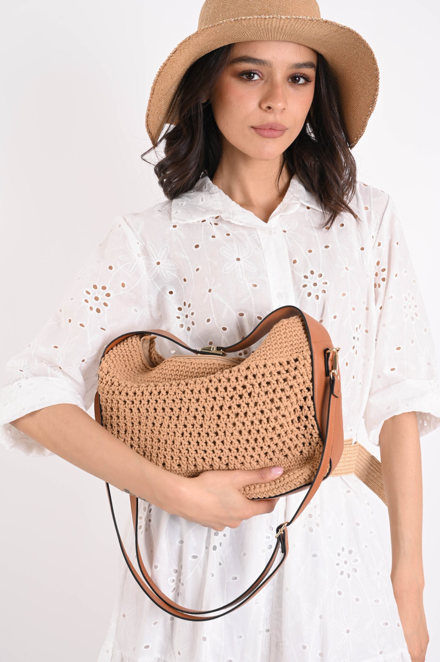 Εκλεπτυσμένη και μοντέρνα, αυτή η υφαντή τσάντα με λουράκι ώμου είναι το ιδανικό αξεσουάρ για να προσθέσετε μια πινελιά στυλ στα καθημερινά σας ρούχα. Το υφαντό σχέδιο προσθέτει υφή και χαρακτήρα, ενώ η συμπαγής δομή της την καθιστά ιδανική για κάθε περίσταση, από μέρα έως νύχτα. Εξοπλισμένη με ένα πρακτικό, ρυθμιζόμενο και αφαιρούμενο λουράκι ώμου, προσφέρει ευελιξία και άνεση, επιτρέποντάς σας να την μεταφέρετε στο χέρι ή στον ώμο. Ευρύχωρη και λειτουργική, έχει σχεδιαστεί για να χωράει κομψά όλα τα απαραίτητα. Ιδανική για casual chic ή πιο εκλεπτυσμένες εμφανίσεις.