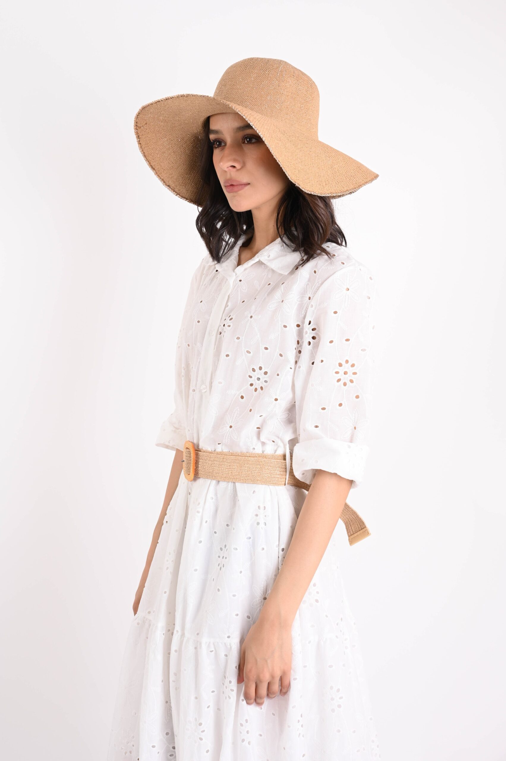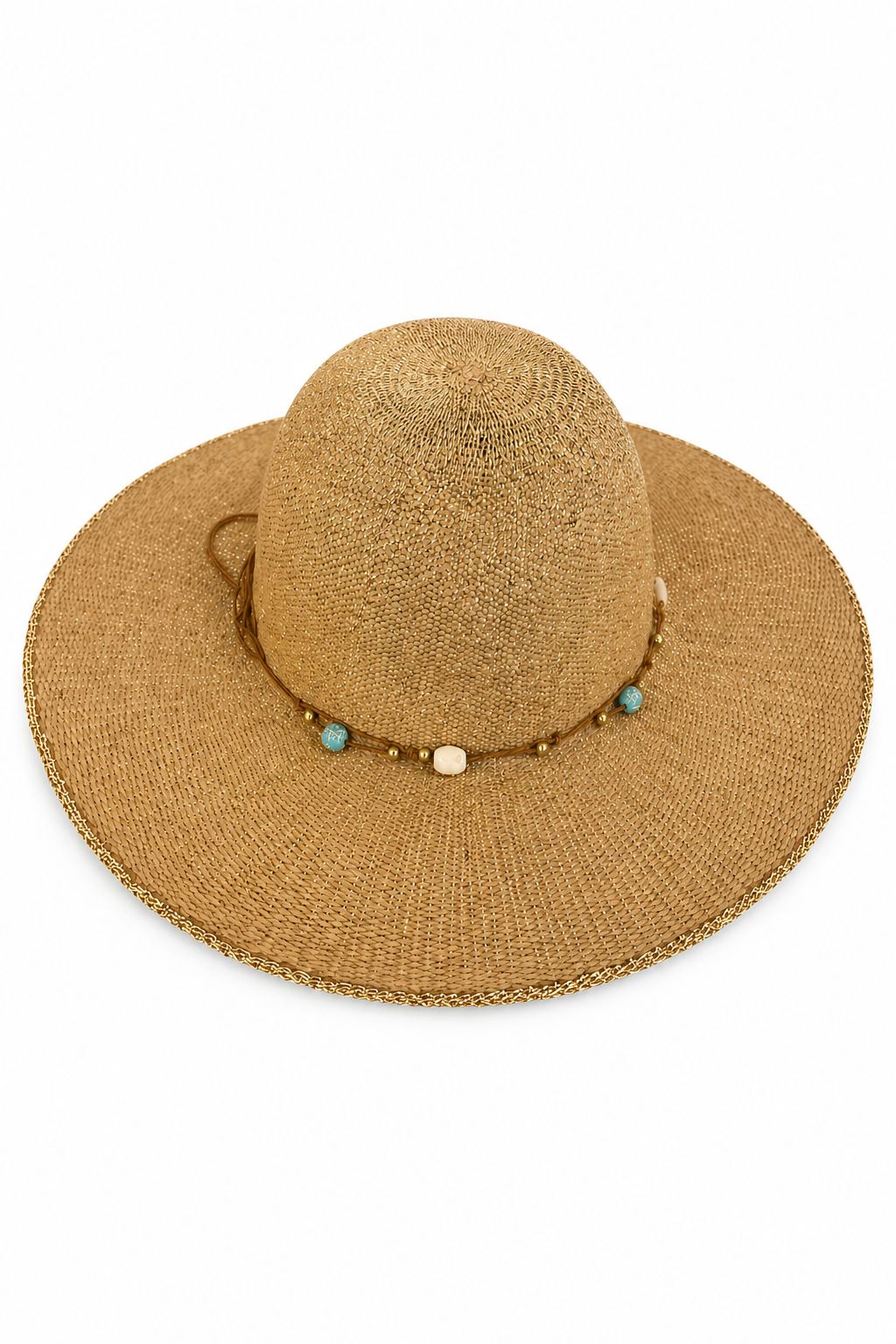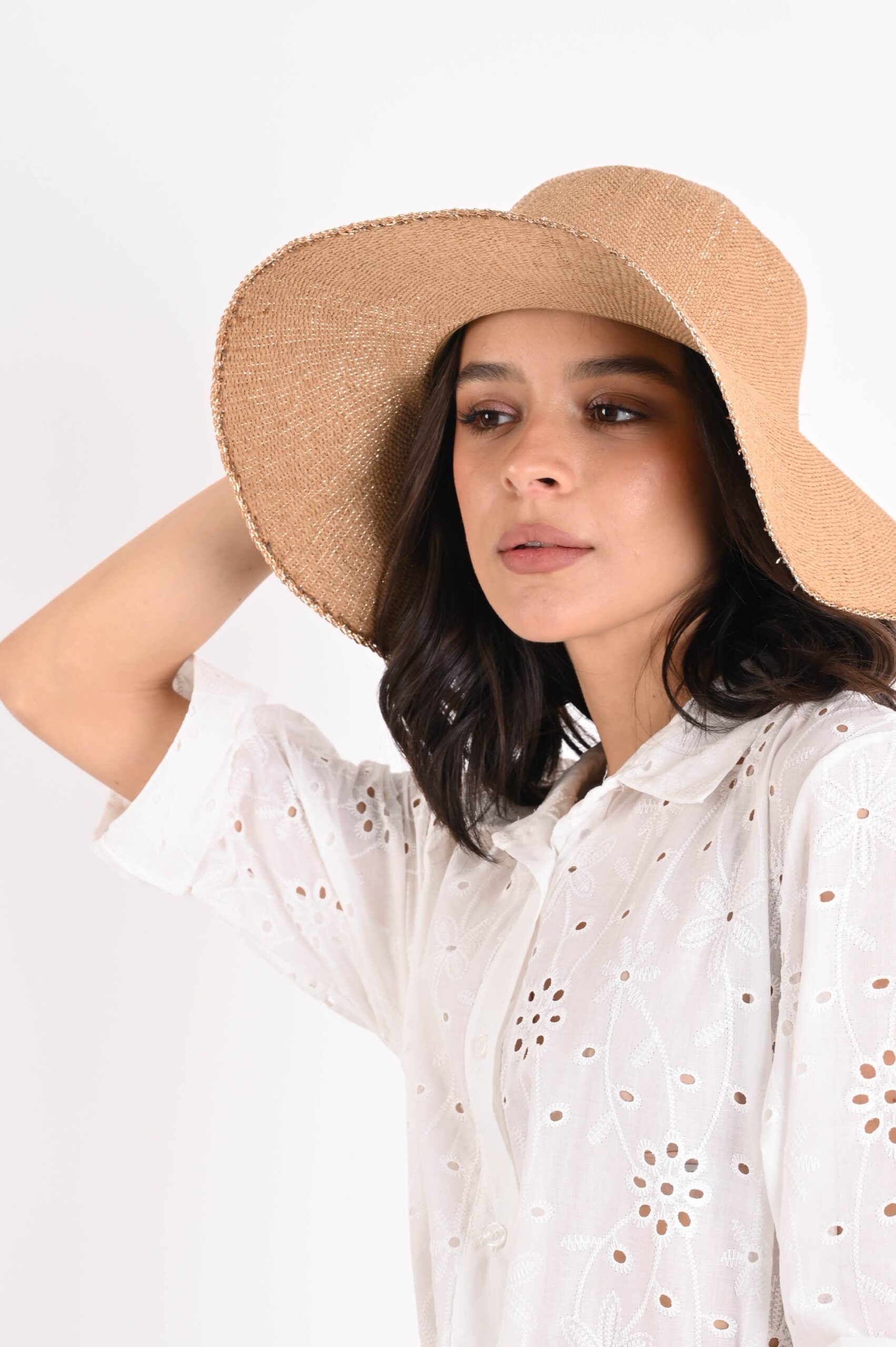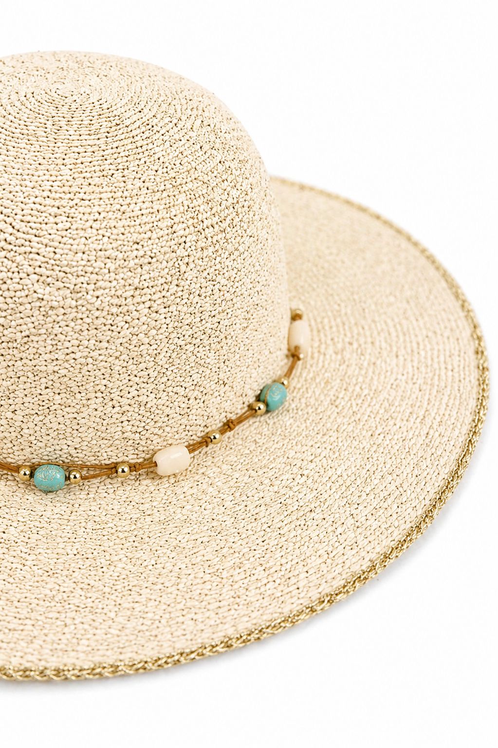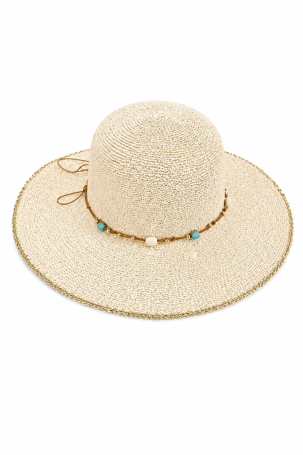 Ιδανικό για να ολοκληρώσετε τις καλοκαιρινές σας εμφανίσεις με μια φωτεινή και εκλεπτυσμένη πινελιά, αυτό το ψάθινο καπέλο με νήμα lurex και διακοσμητικά κοχύλια συνδυάζει στυλ και πρωτοτυπία. Κατασκευασμένο από ελαφρύ και αναπνεύσιμο άχυρο, είναι διακοσμημένο με λεπτές κλωστές lurex που προσδίδουν μια διακριτική λάμψη, ενώ τα εφαρμοσμένα κοχύλια προσθέτουν μια φυσική, θαλασσινή πινελιά. Ιδανικό για την παραλία, τις διακοπές ή τις μέρες που περνάτε σε εξωτερικούς χώρους, προσφέρει κομψή προστασία από τον ήλιο. Ευέλικτο και μοντέρνο, είναι το τέλειο αξεσουάρ για boho, casual ή beachwear ντυσίματα.