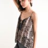Αυτό το γυναικείο τοπ από πύθωνα διαθέτει έντονο, μοντέρνο σχεδιασμό, ιδανικό για να αναδείξει θηλυκές και τολμηρές εμφανίσεις. Το μοτίβο πύθωνα προσθέτει προσωπικότητα στο κομμάτι, καθιστώντας το ιδανικό τόσο για καθημερινά όσο και για πιο εκλεπτυσμένα σύνολα. Η εφαρμογή έχει σχεδιαστεί για να αγκαλιάζει τη σιλουέτα χωρίς να την περιορίζει, προσφέροντας άνεση και στυλ όλη την ημέρα.