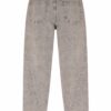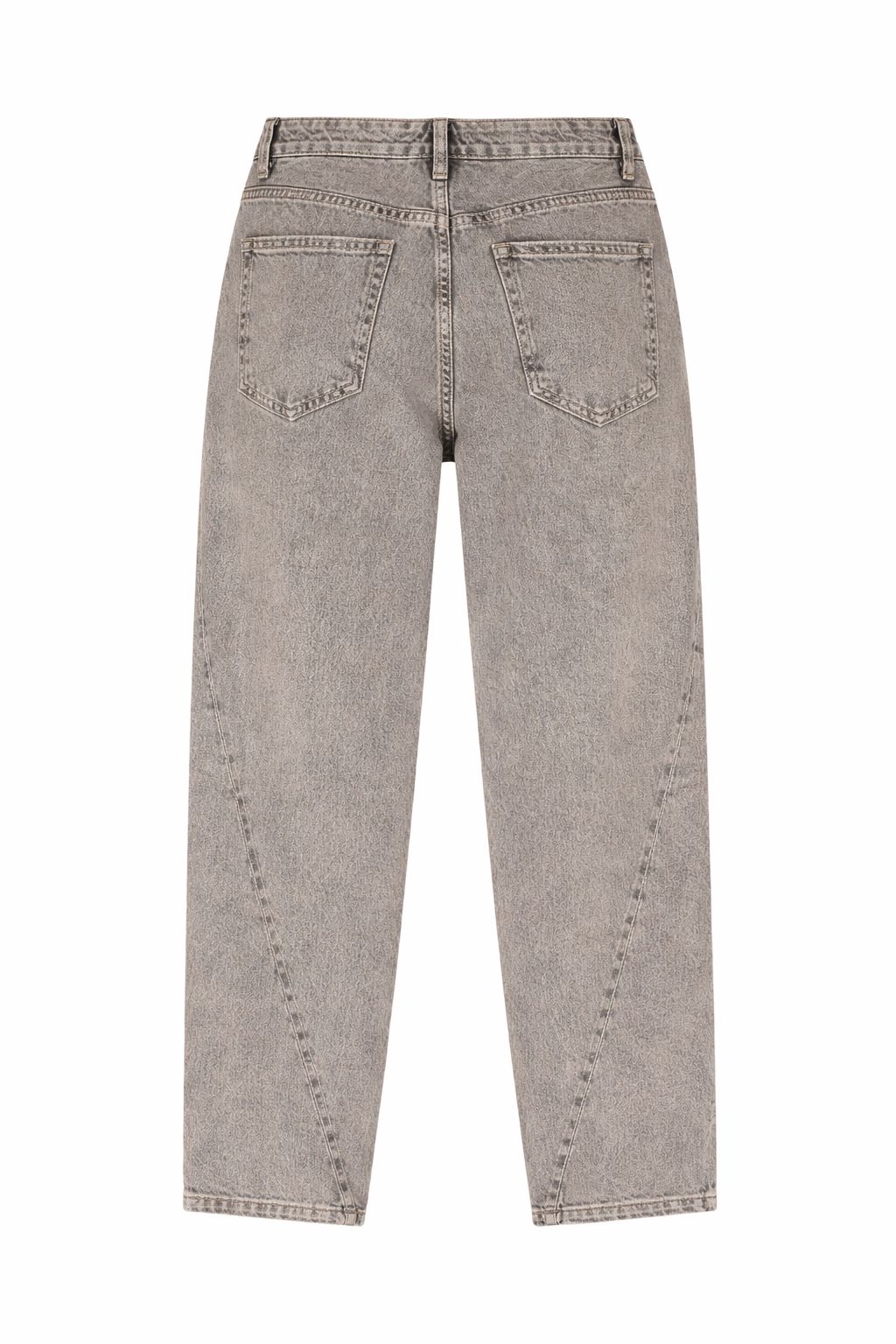 Questo jeans straight fit presenta una linea pulita con gamba dritta e una distintiva cucitura frontale leggermente spostata che dona movimento e originalità al capo.