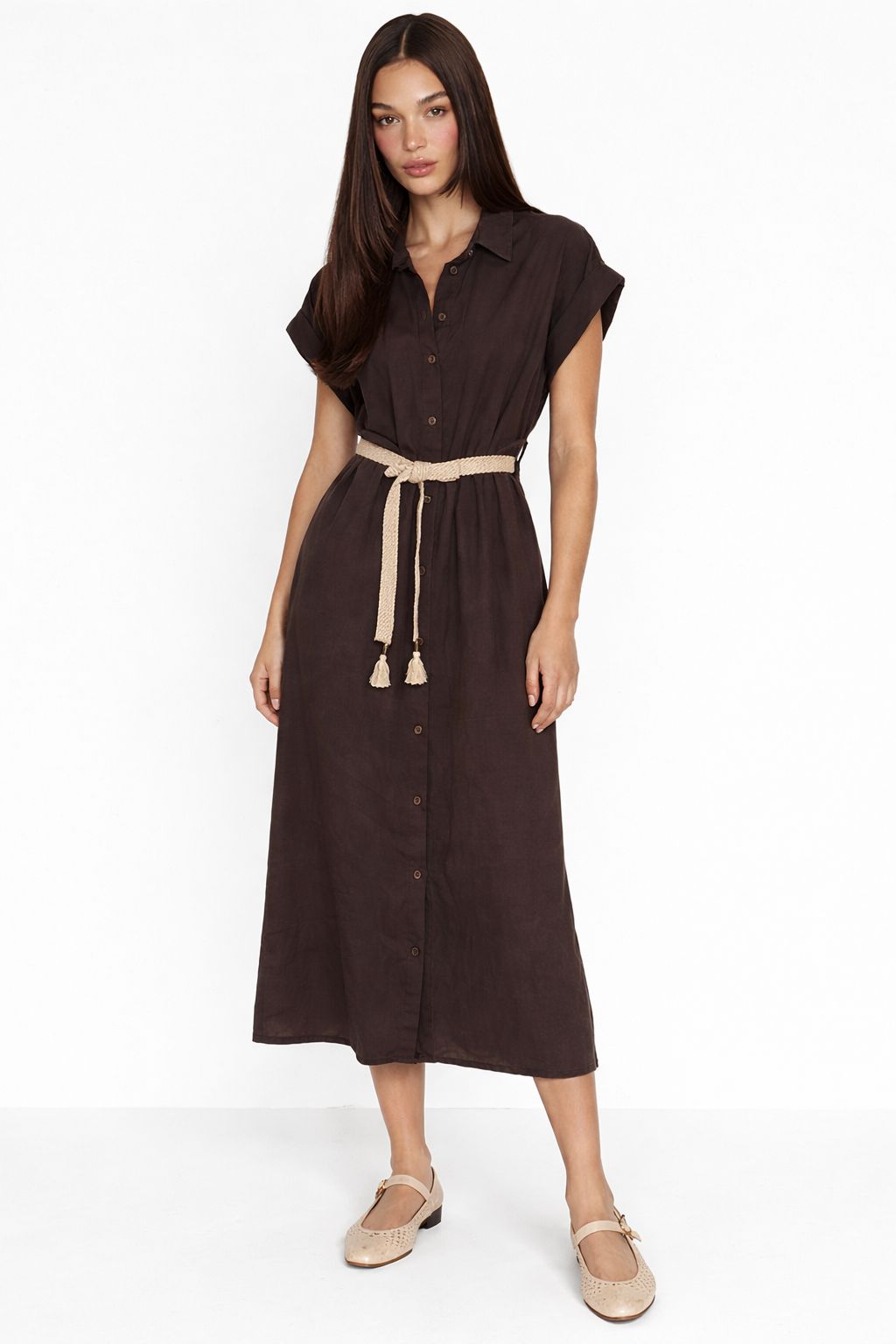 Φόρεμα πουκάμισο με κοντό μανίκι, ζώνη και φούντες, ένα ευέλικτο και μοντέρνο κομμάτι, ιδανικό για την άνοιξη/καλοκαίρι. Το φόρεμα πουκάμισο κολακεύει τη σιλουέτα διατηρώντας παράλληλα μια άνετη εφαρμογή, ιδανικό για κάθε ώρα της ημέρας.