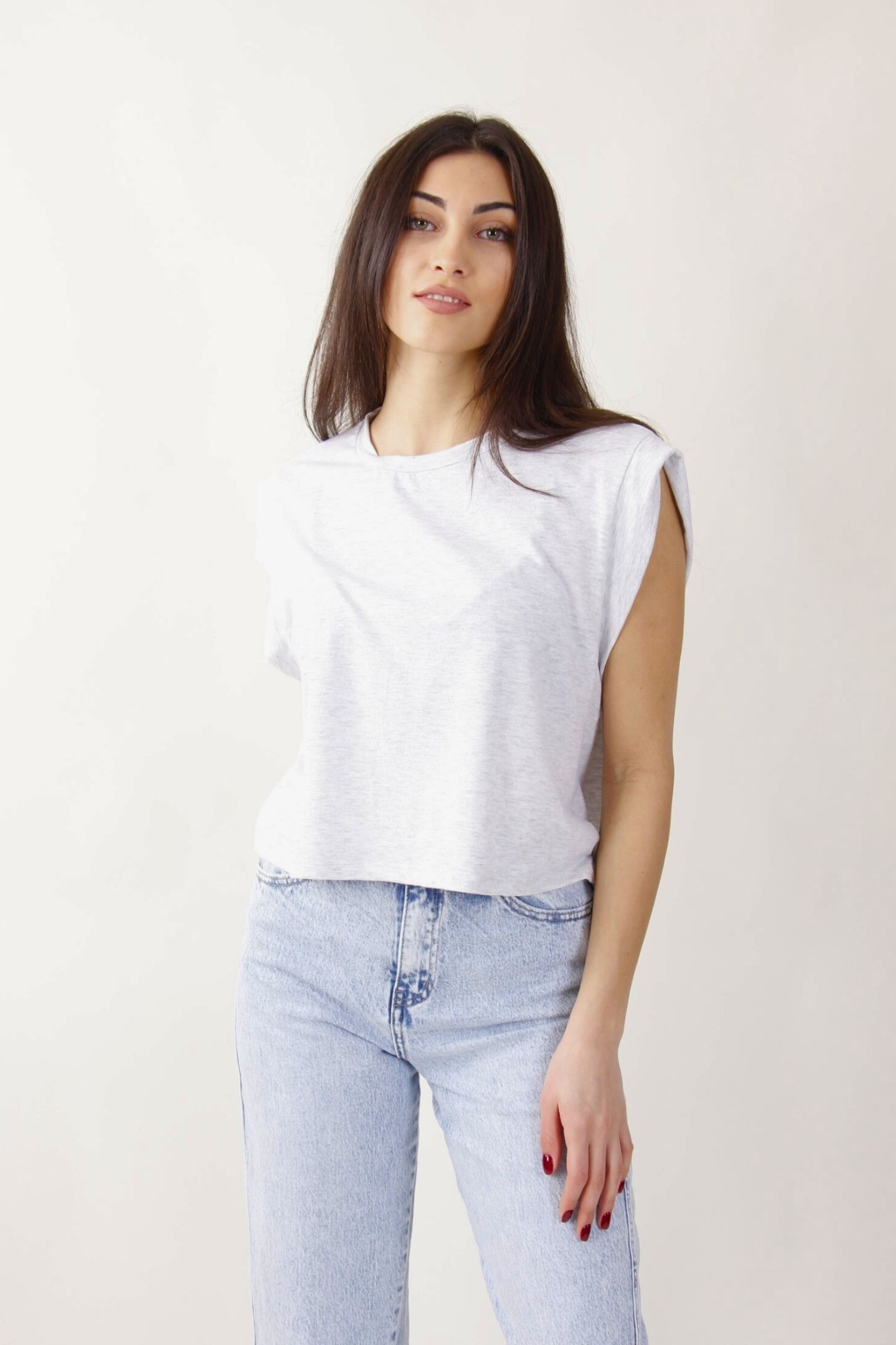 Μπλουζάκι κουτί, με λαιμόκοψη, αμάνικο σχέδιο και χαλαρή εφαρμογή.