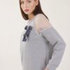 Φούτερ με στρογγυλή λαιμόκοψη με ένθετο από τούλι στον ώμο. Διακοσμημένο με αφαιρούμενη καρφίτσα φιόγκου.