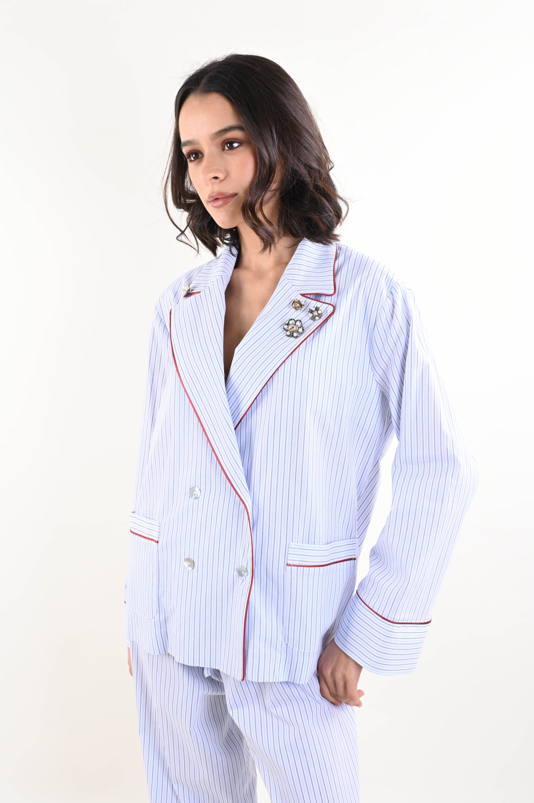 Το μπροστινό κλείσιμο με κουμπιά και οι τσέπες με μπάλωμα καθιστούν αυτό το ένδυμα πρακτικό και λειτουργικό, ιδανικό τόσο για καθημερινή χρήση όσο και για πιο εκλεπτυσμένα σύνολα. Τα μακριά μανίκια με διακοσμητικά διακοσμητικά σε αντίθεση ολοκληρώνουν το σχέδιο, προσδίδοντας χαρακτήρα και αναγνωρισιμότητα στο κομμάτι.