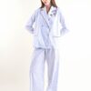 Άνετο ριγέ παντελόνι κοστουμιού με κορδόνι στη μέση. Ιδανικό για να ολοκληρώσει τα μοντέρνα outfits της ημέρας. Στυλ Palazzo με λάστιχο στη μέση.