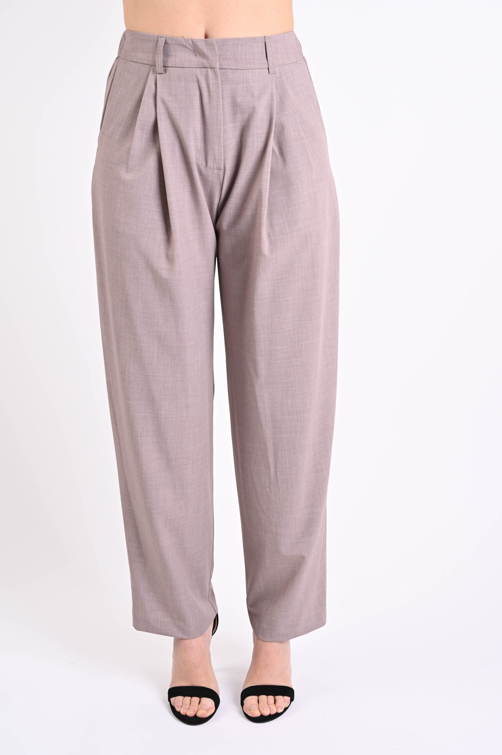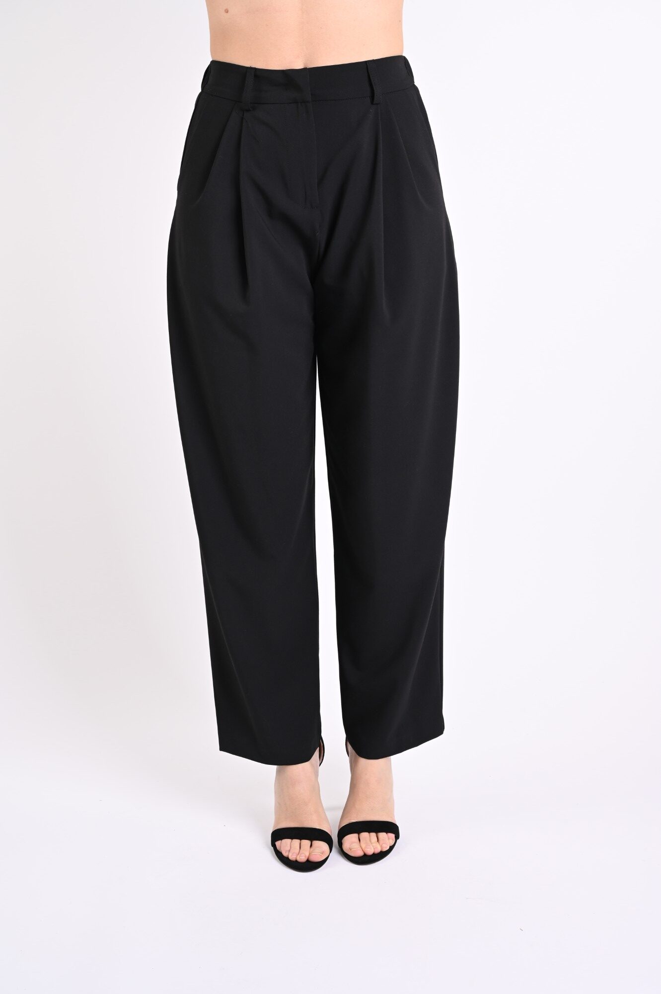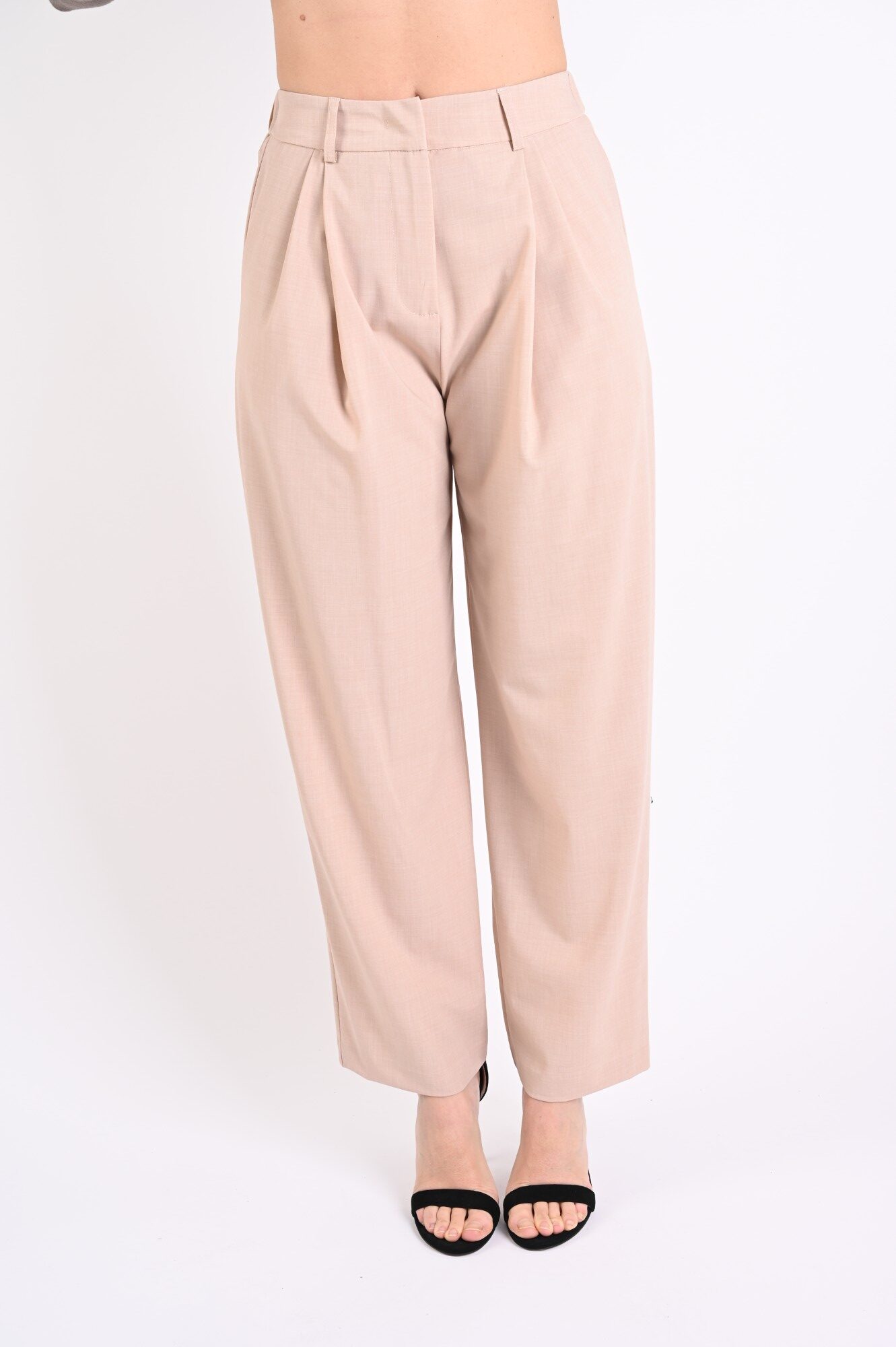Πλισέ παντελόνι cigarette, σχεδιασμένο για κομψά και μοντέρνα σύνολα. Η στενή γραμμή λεπταίνει τη σιλουέτα, ενώ οι μπροστινές πτυχώσεις ορίζουν τη δομή του ενδύματος, εξασφαλίζοντας μια αρμονική και άνετη εφαρμογή.