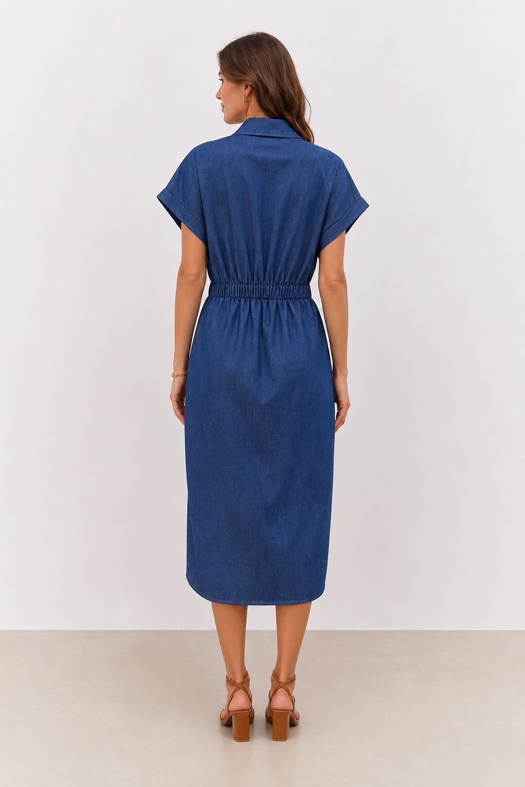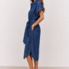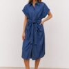 Αυτό το κοντομάνικο τζιν φόρεμα-πουκάμισο με ζώνη στη μέση είναι η ιδανική επιλογή για μια casual αλλά και εκλεπτυσμένη εμφάνιση. Κατασκευασμένο από απαλό, ανθεκτικό τζιν, αυτό το φόρεμα συνδυάζει άνεση και στυλ σε ένα ευέλικτο κομμάτι. Ο κλασικός γιακάς θυμίζει την κομψότητα των πουκάμισων, ενώ το μπροστινό κλείσιμο και η ρέουσα γραμμή προσδίδουν μια πρακτική αλλά και θηλυκή πινελιά.
