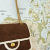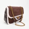 SUEDE-EFFECT FLAP BAG WITH SHEARLING TRIM AND GOLD CHAIN