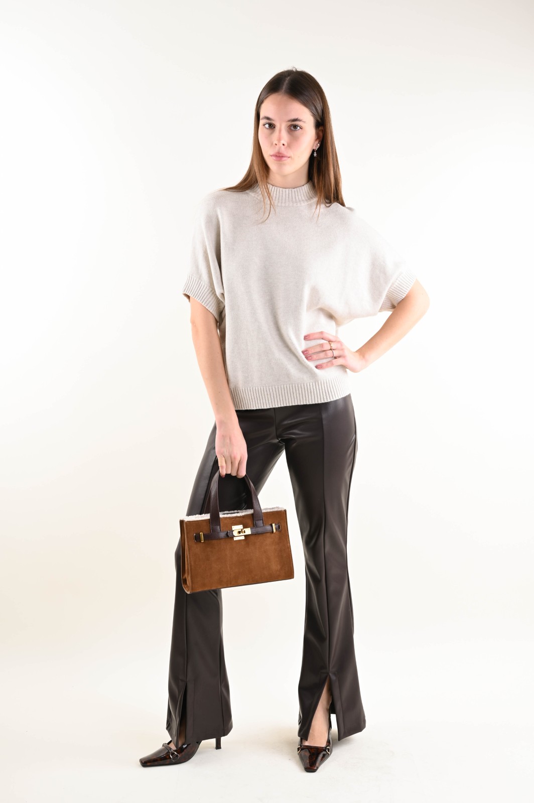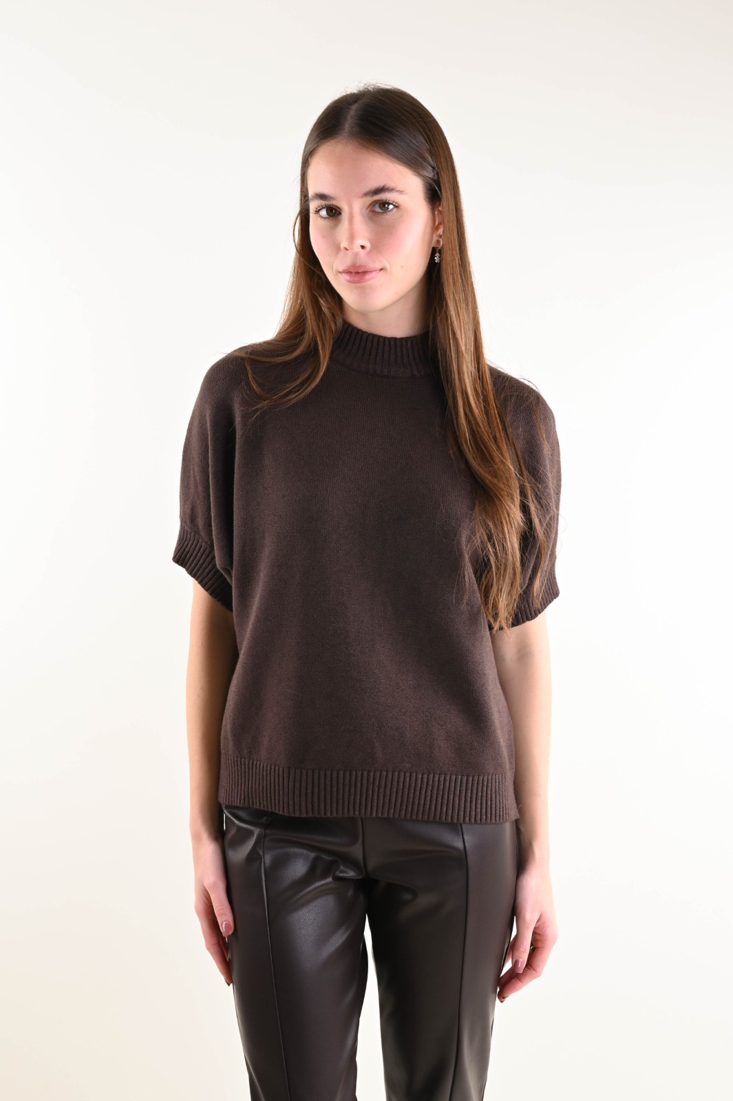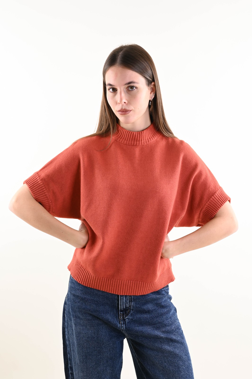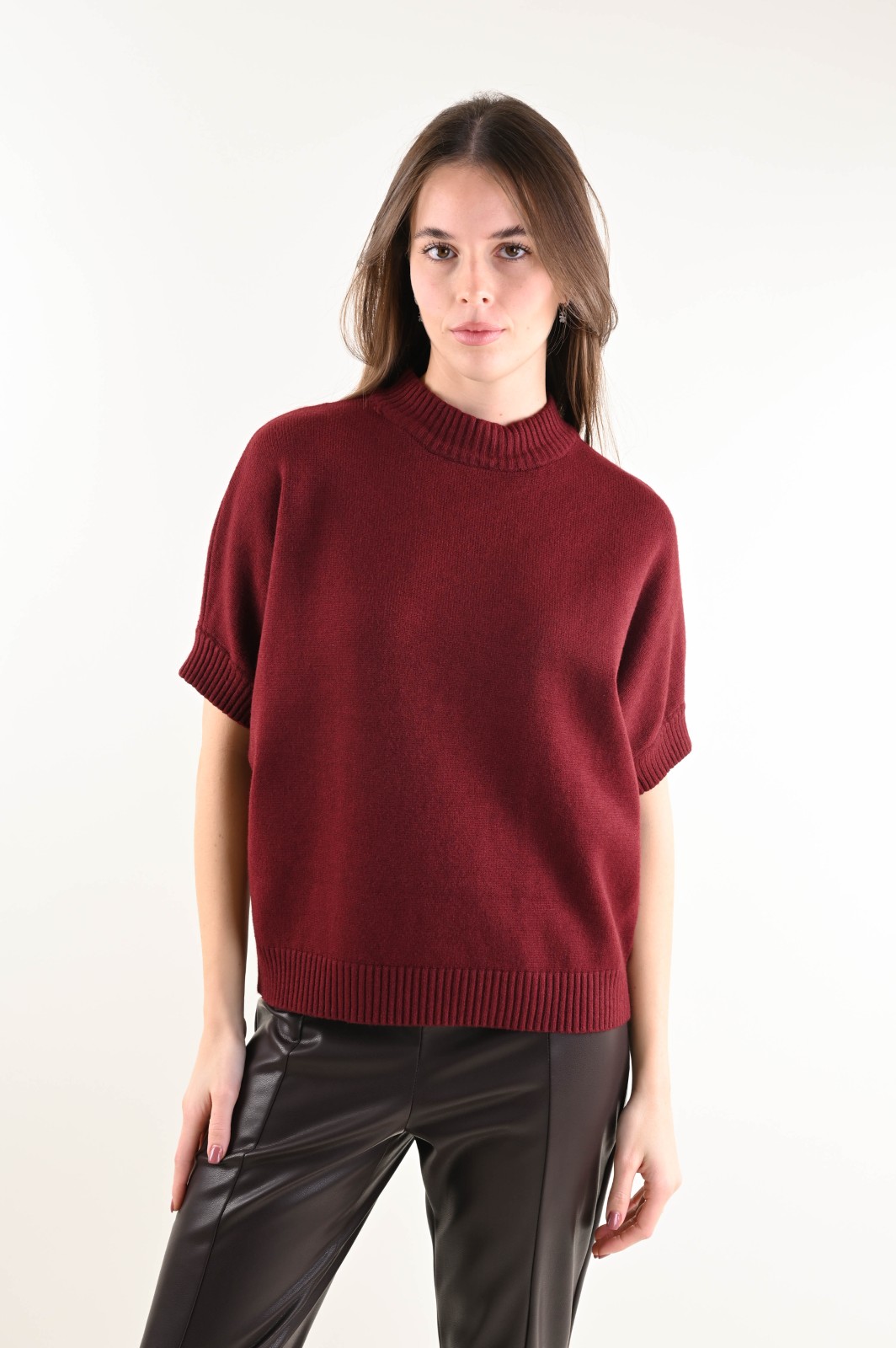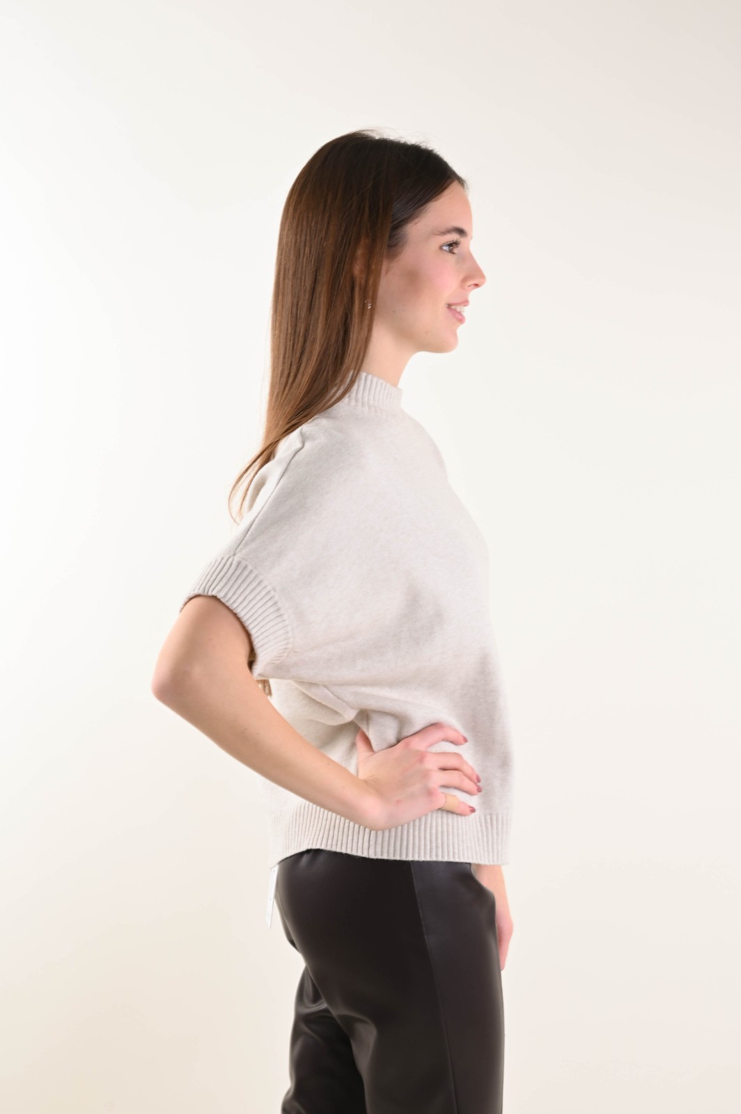Short-sleeved batwing sweater and a ribbed neckline. A feminine and contemporary piece, perfect for adding a refined touch to seasonal looks. Its soft fit and clean design make it ideal to pair with jeans or trousers for an elegant yet effortless outfit.