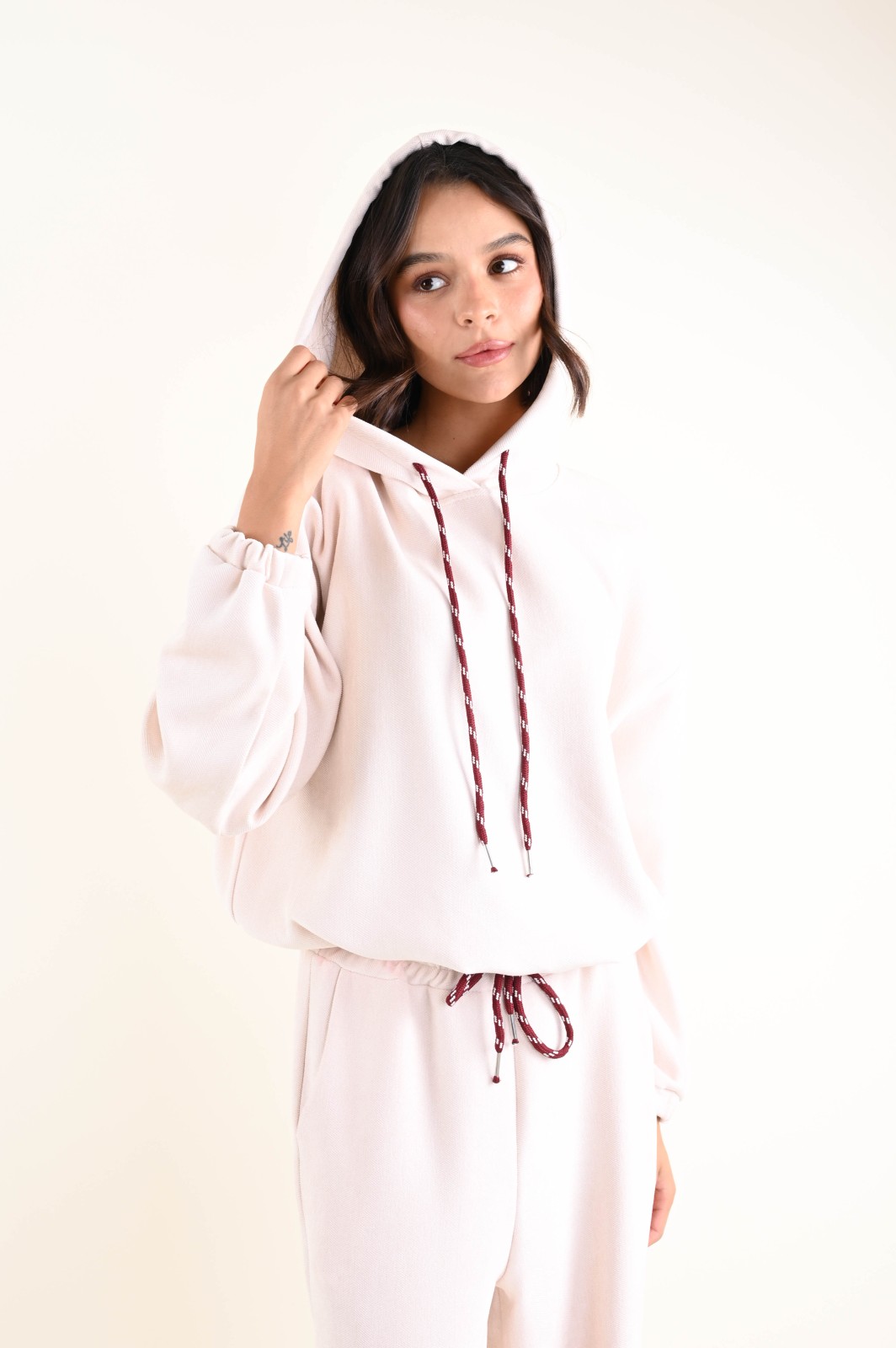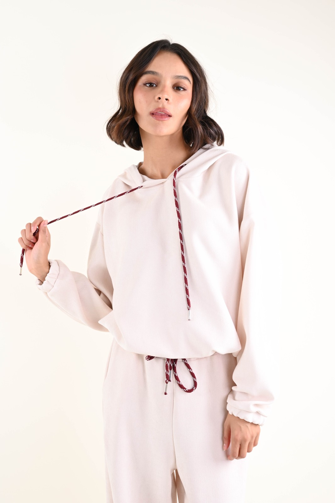 RIBBED VELVET HOODIE WITH DRAWSTRING