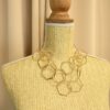 Statement necklace made of interlaced rings and geometric shapes. A modern and luminous accessory that enhances any look with a contemporary and bold touch. Perfect to complete both elegant and casual outfits.