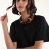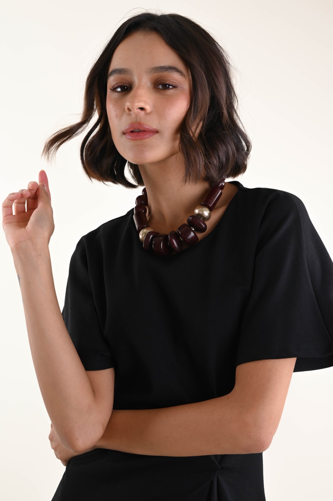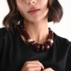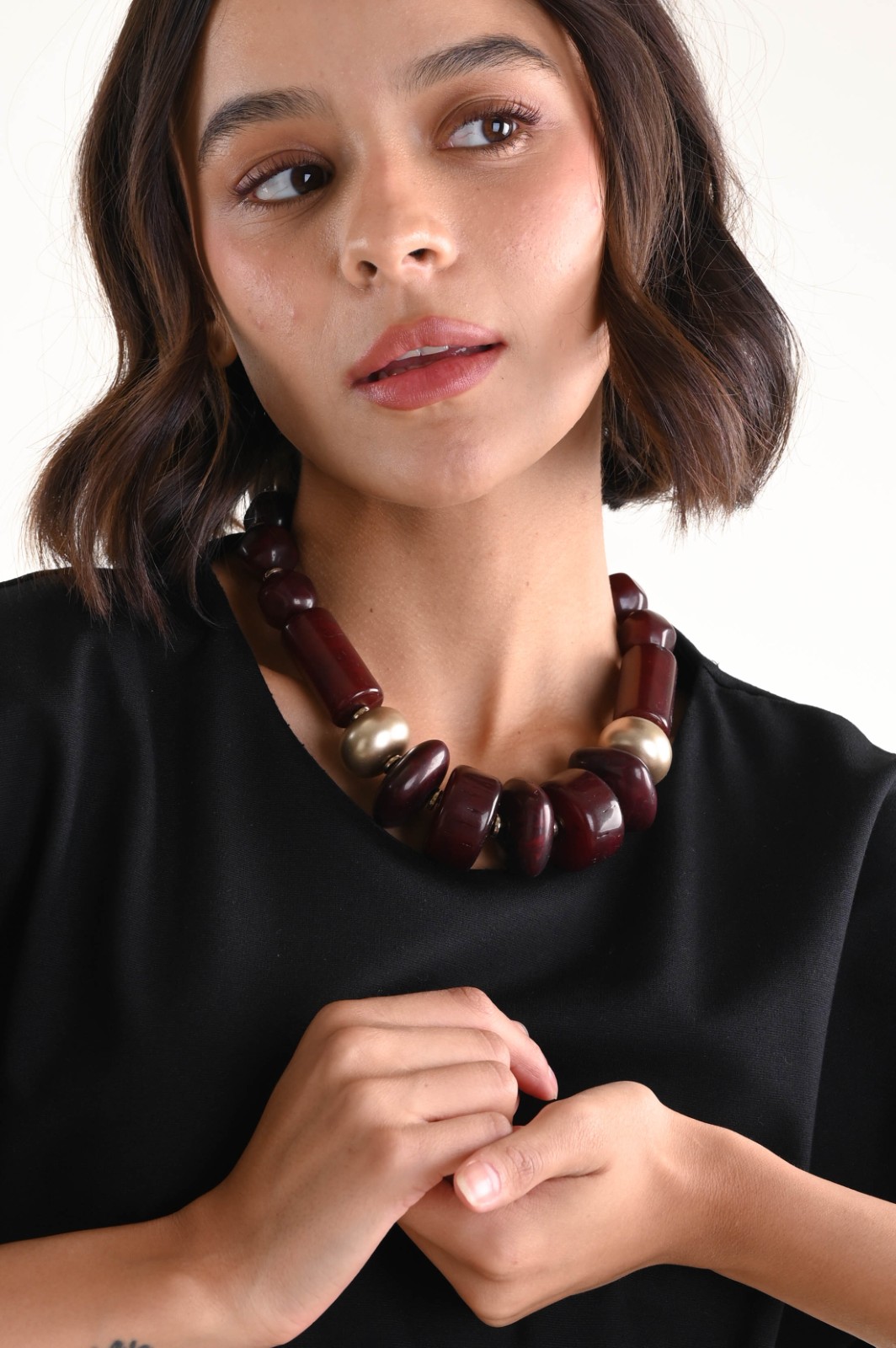 Costume jewelry necklace featuring cylindrical components and oversized beads for a bold, contemporary style. Ideal for boutiques looking for structured pieces that add character to minimal looks and elevate everyday outfits with a refined touch. Lightweight, distinctive, and perfect for creating strong visual impact in displays.