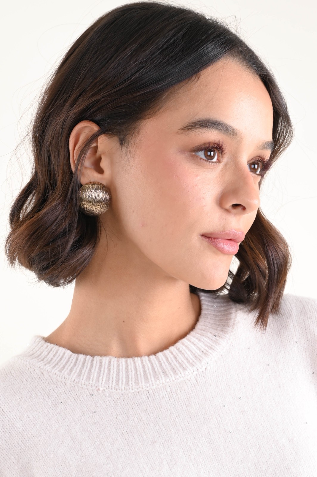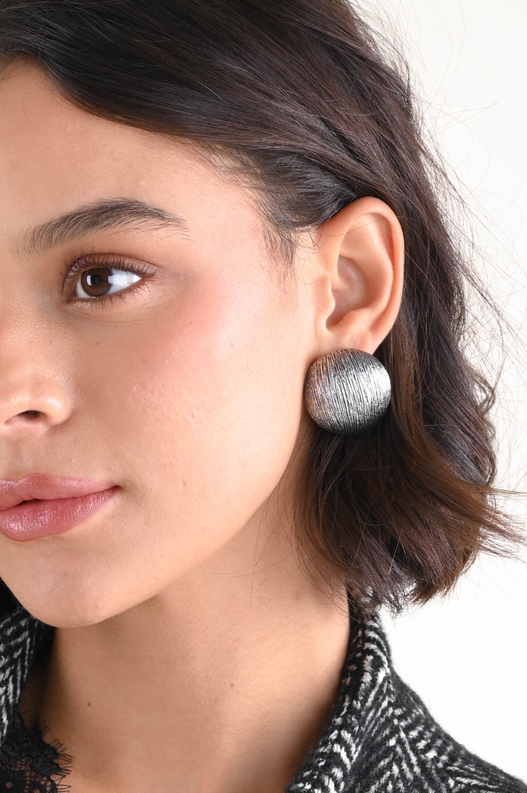 Costume jewelry round earrings featuring a refined hammered texture effect, designed to add a modern and elegant touch to any outfit. Lightweight, versatile, and ideal for boutiques looking for stylish accessories that pair effortlessly with both everyday looks and special occasions. A minimal yet striking design that enhances the face with subtle sophistication.