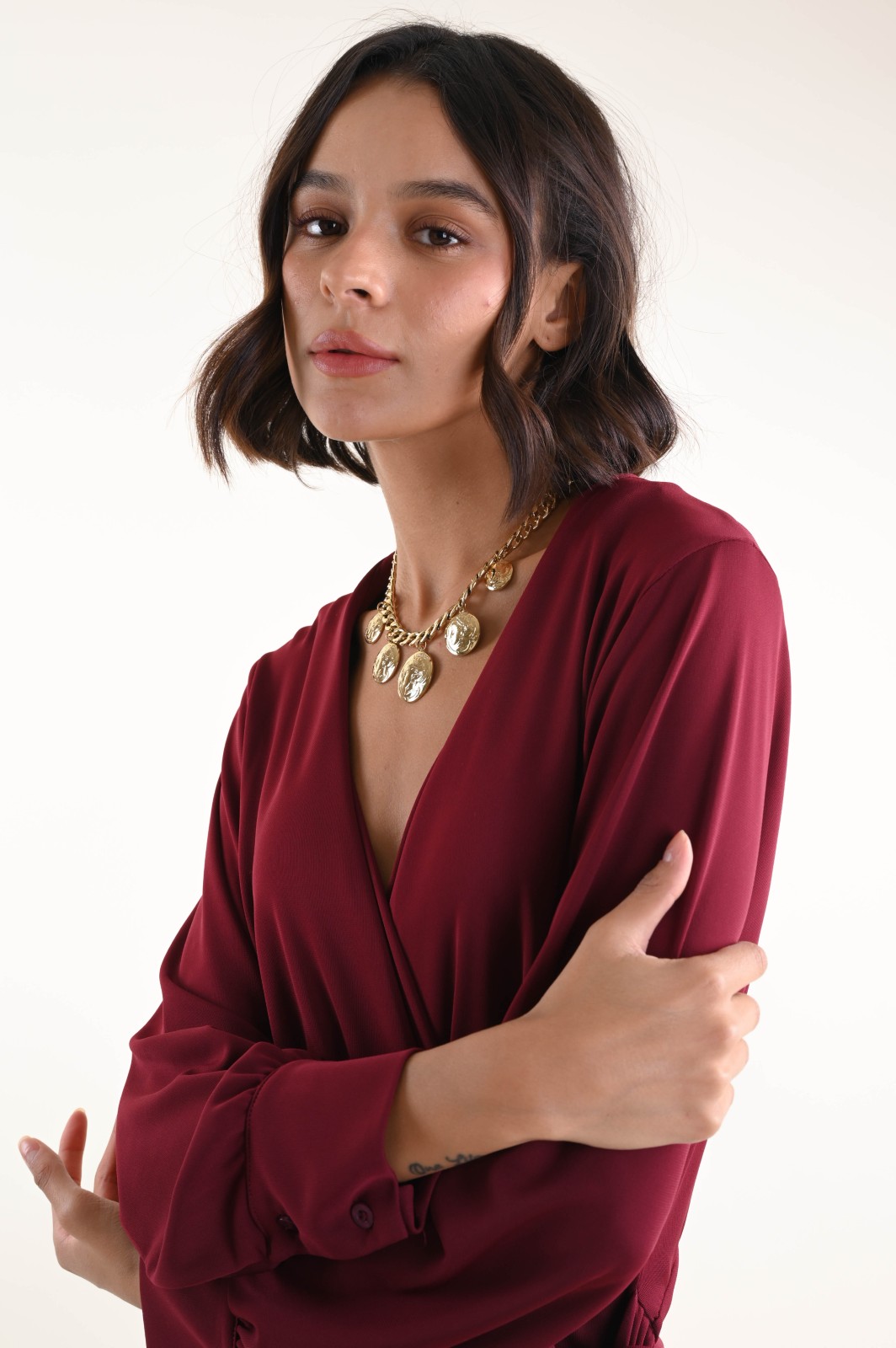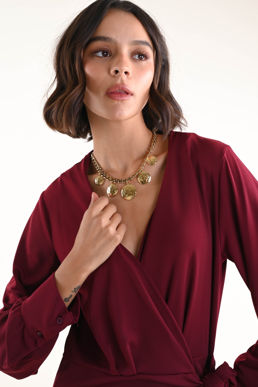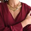 Costume jewelry chain necklace featuring engraved medallion charms, designed to bring a refined and contemporary touch to any outfit. A versatile, eye-catching accessory ideal for boutiques looking to offer elegant yet easy-to-style pieces. Lightweight and bright, perfect for enhancing both everyday looks and more polished ensembles.