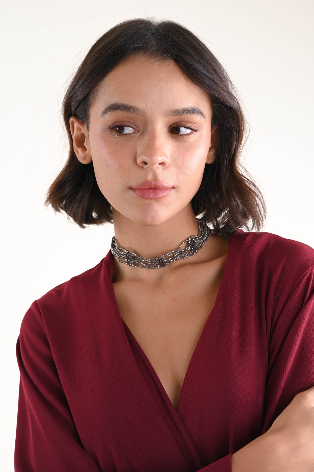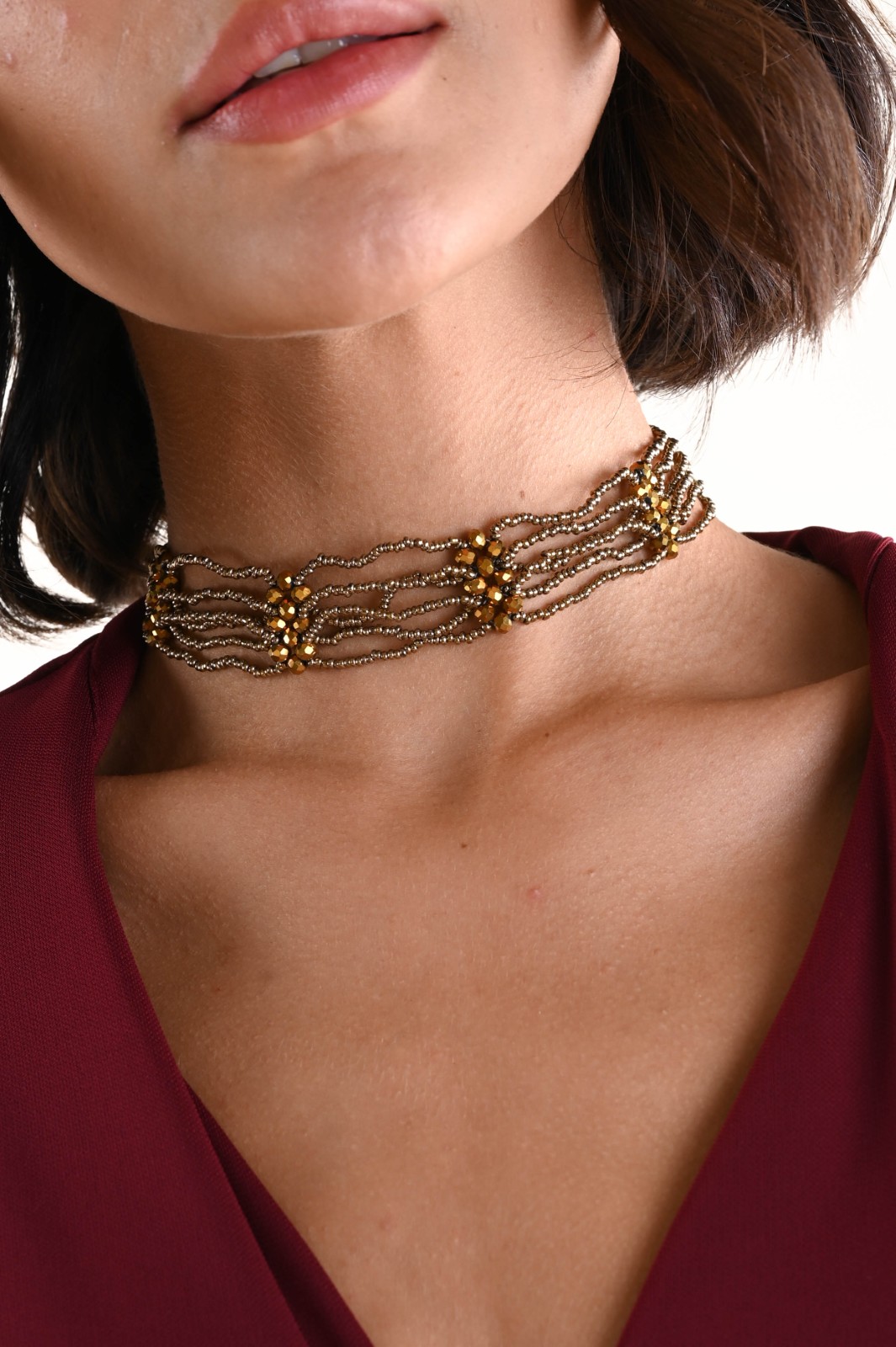 INTERWOVEN CHOKER WITH MICRO BEADS AND SHINY DETAILS