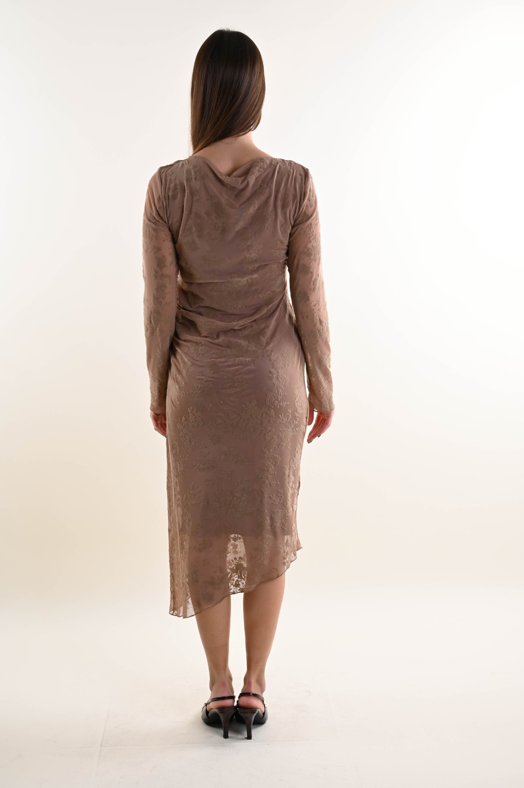 LONG JACQUARD TULLE DRESS WITH SIDE DRAPING